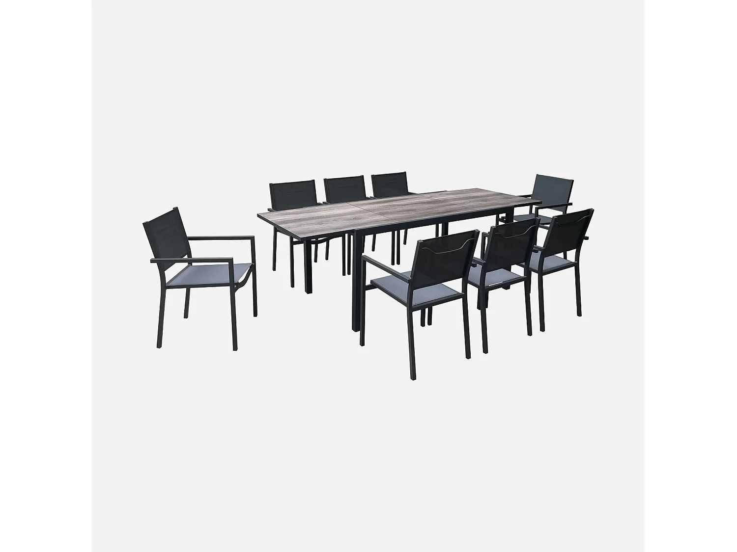 Table de jardin NASHVILLE extensible 160/240cm 8 places plateau effet bois foncé structure aluminium