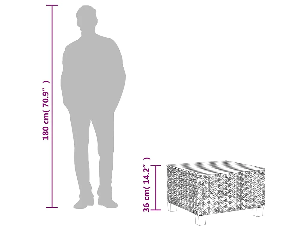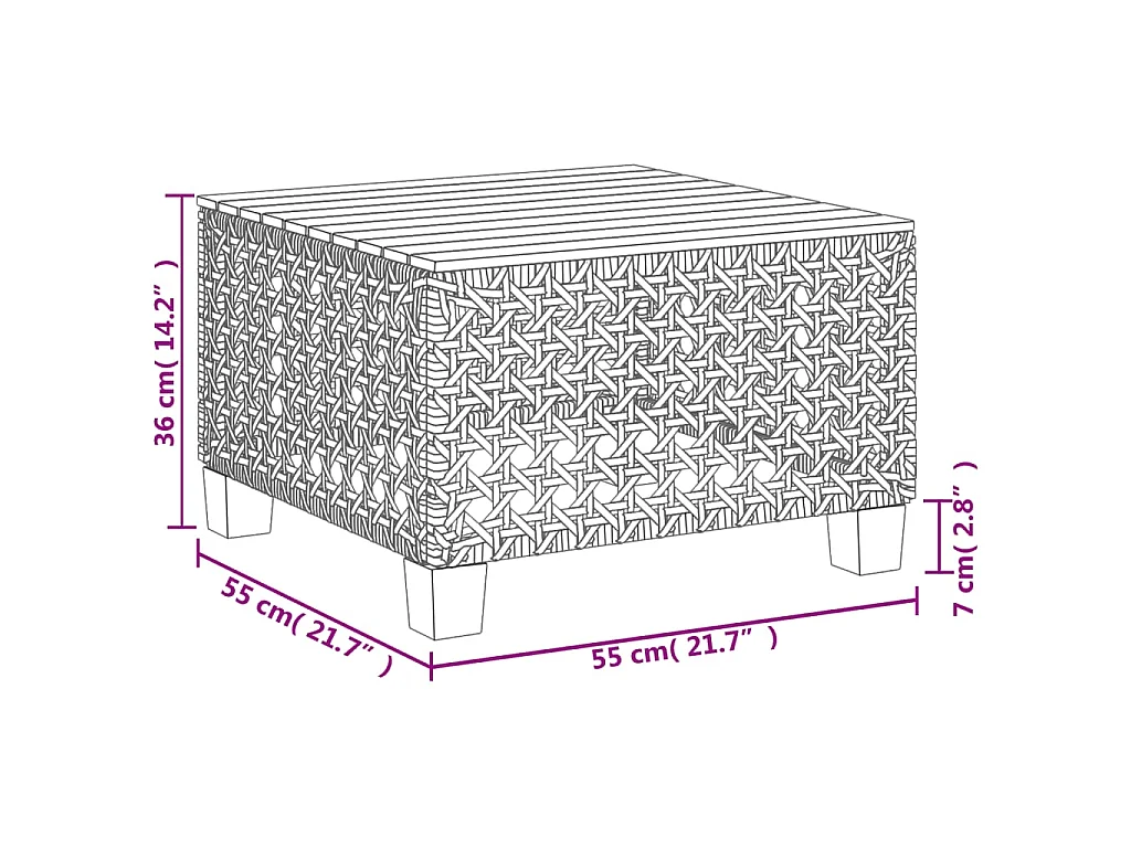 Table de jardin noir 55x55x36 cm résine tressée et bois acacia
