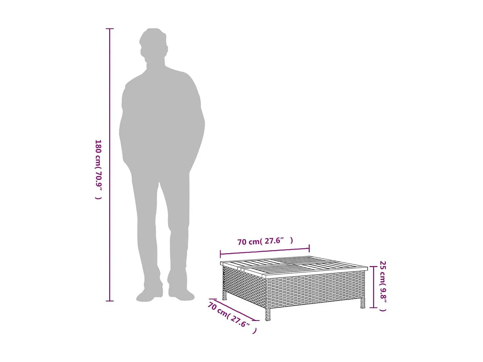 Table de jardin noir 70x70x25 résine tressée et bois acacia