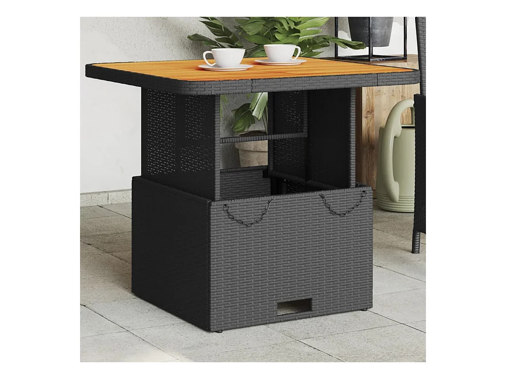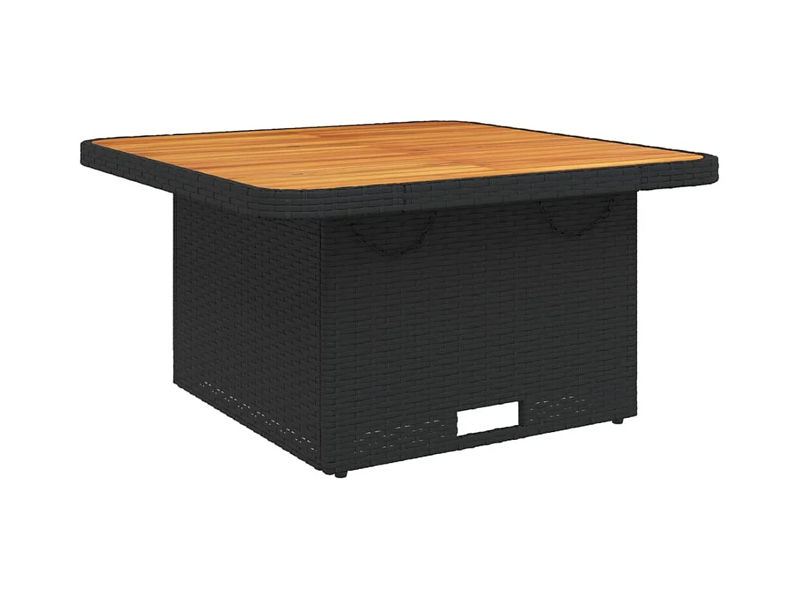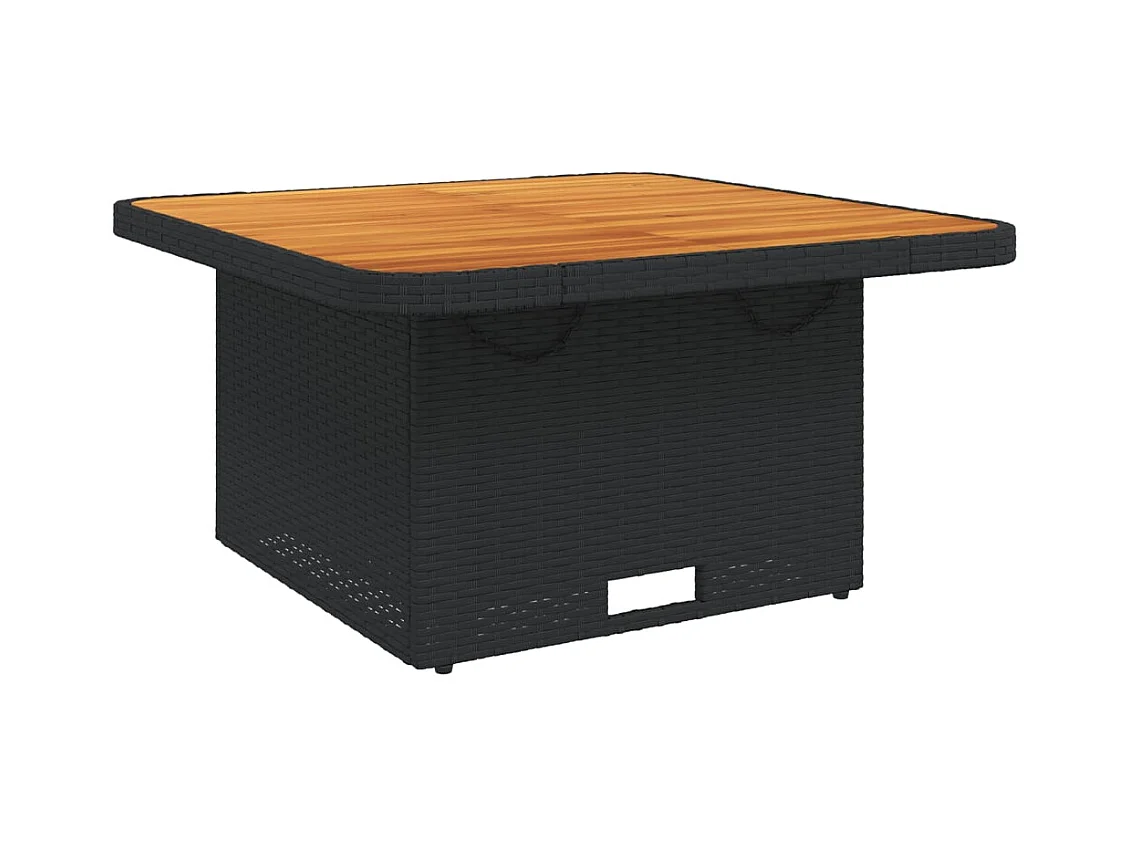 Table de jardin noir 80x80x71 résine tressée et bois acacia