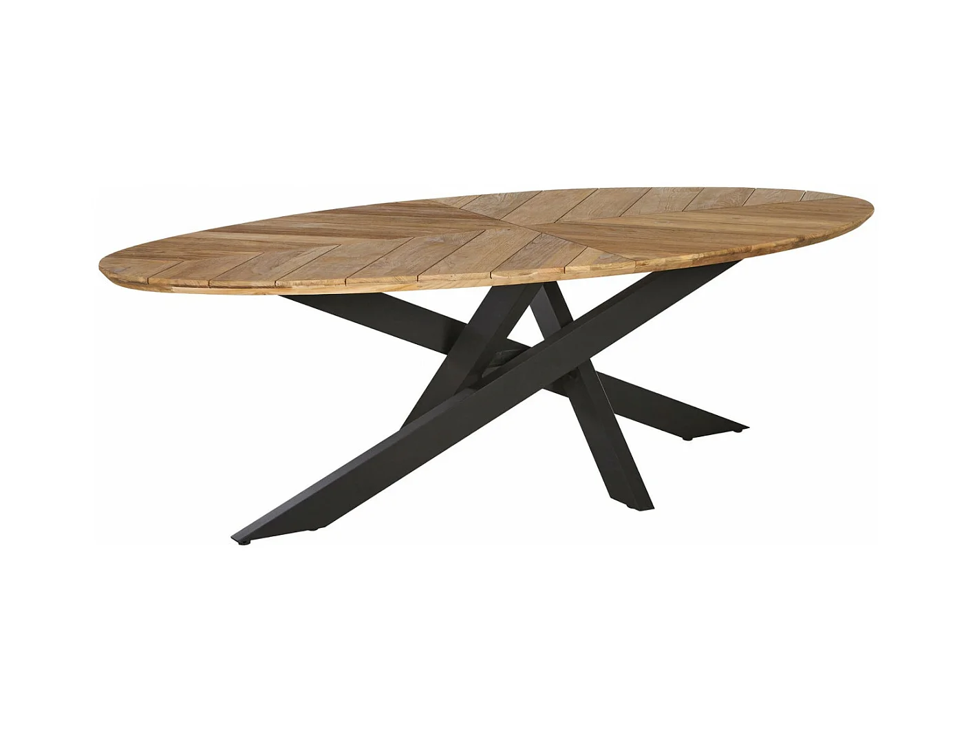 Table de jardin ovale en teck et métal noir L220 10 places - CAPO