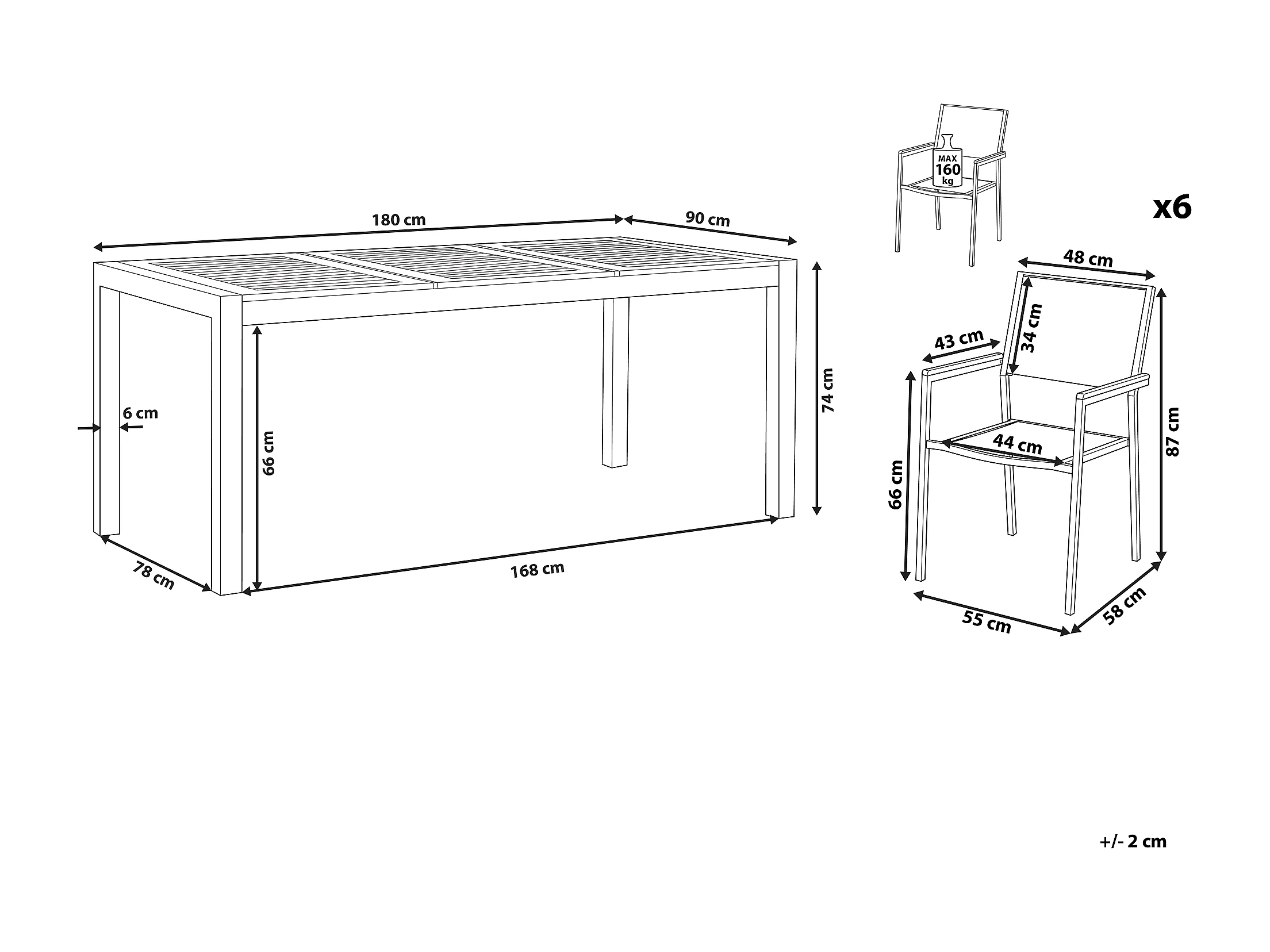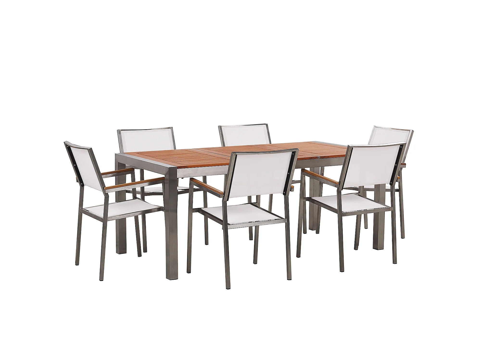 Salle à manger de jardin 6 places GROSSETO Bois d\'eucalyptus Marron/blanc