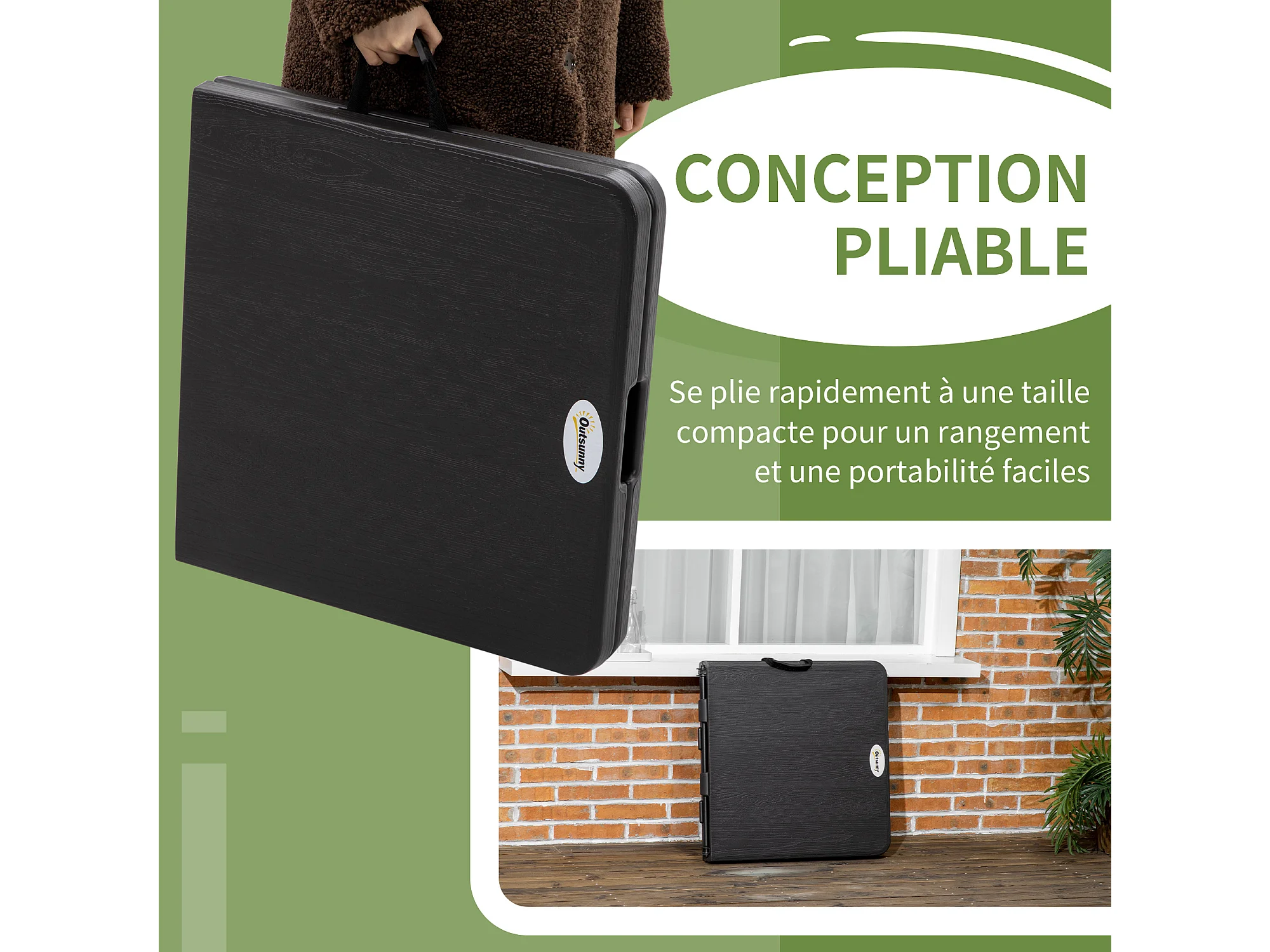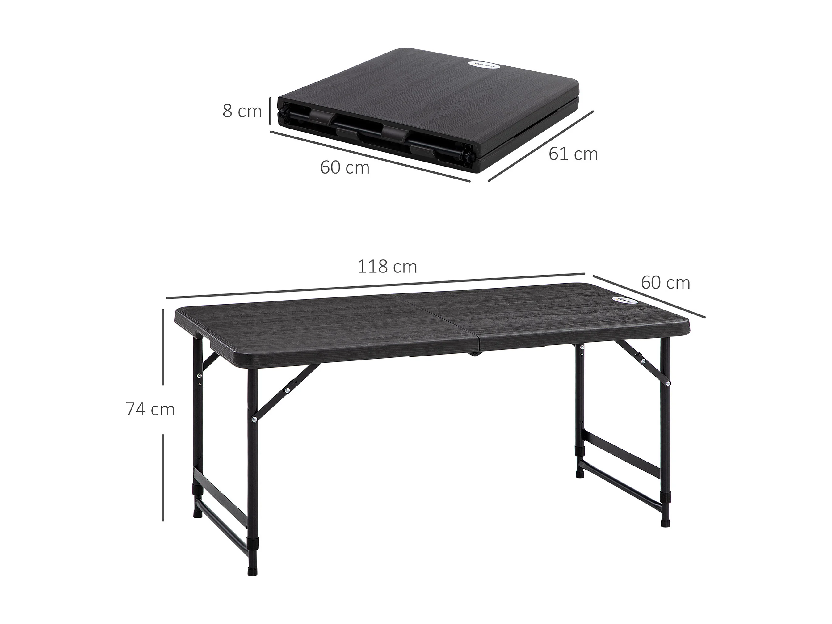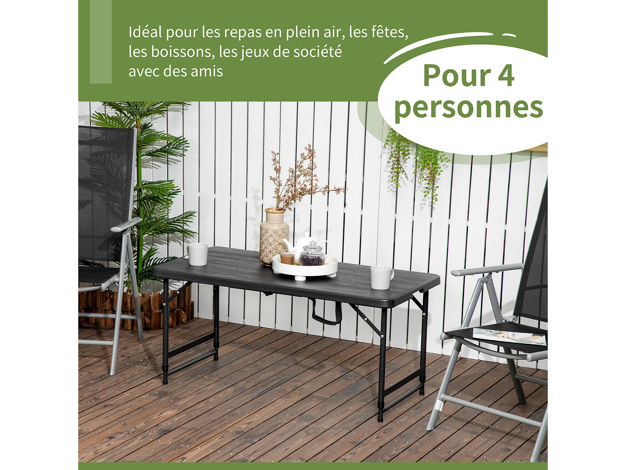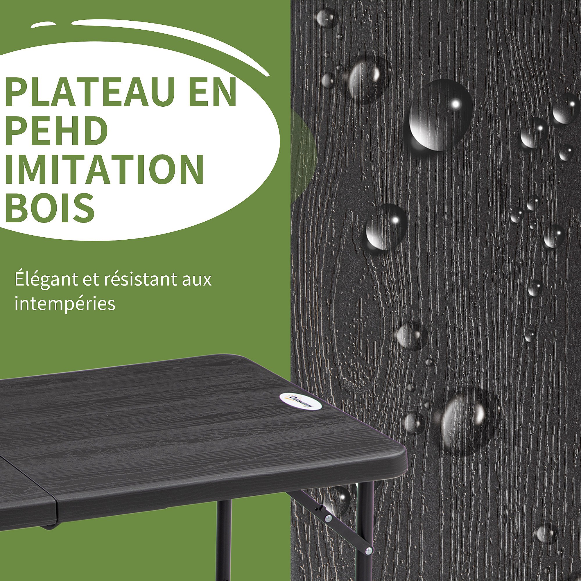 Table de jardin pliable 4 personnes table de camping pliable hauteur réglable acier époxy plateau HDPE aspect bois gris