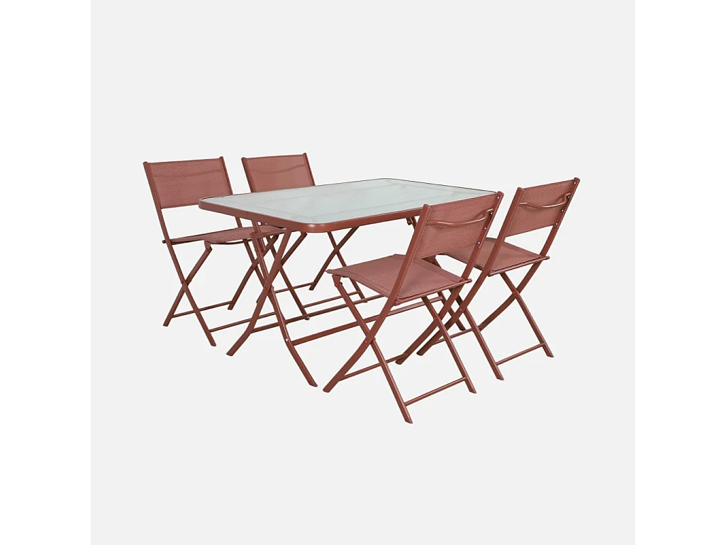 Table de jardin pliante acier + 4 assises textilène terracotta - Ancona