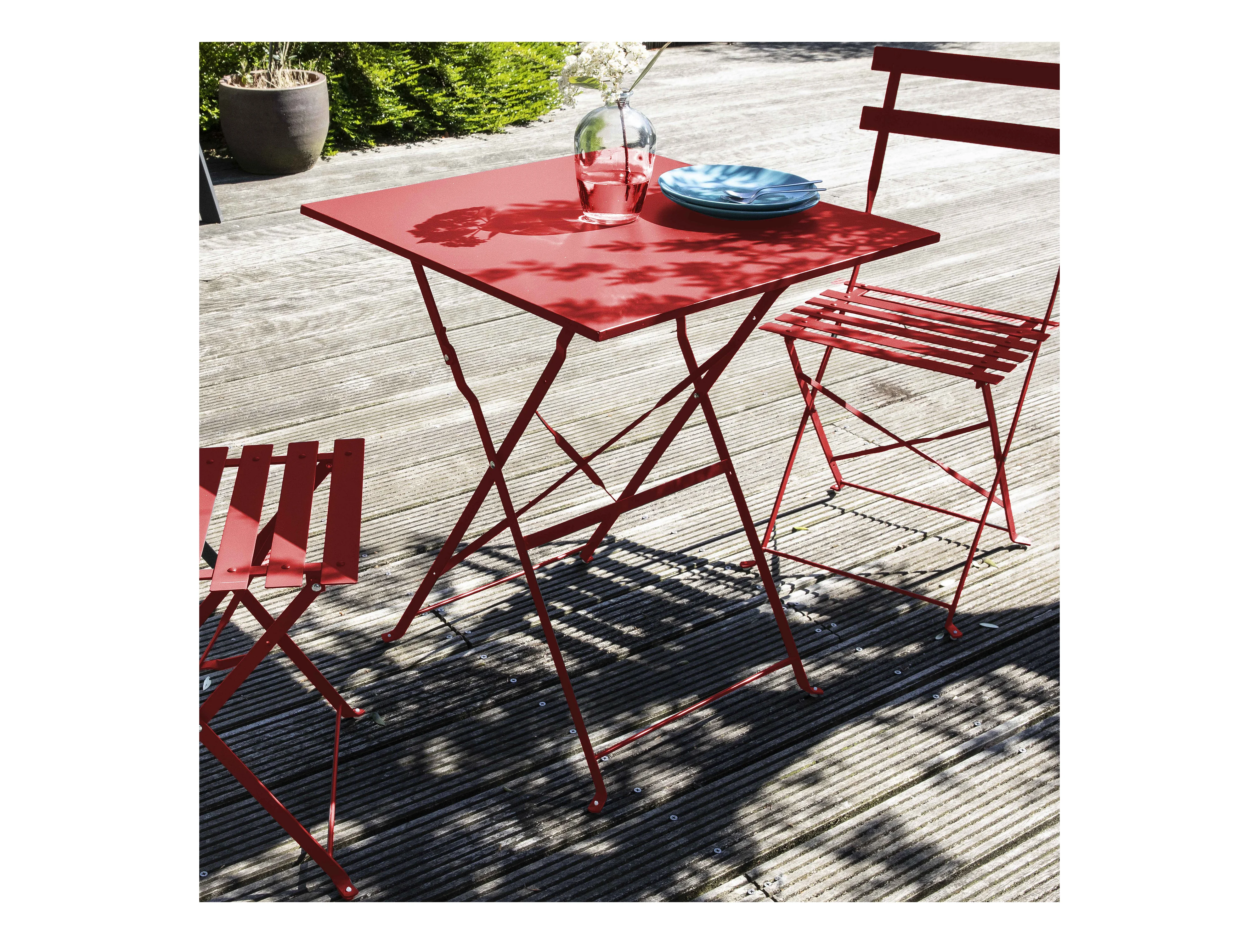 Table jardin bistrot carrée pliable 70x70cm. 2 places en acier thermolaqué