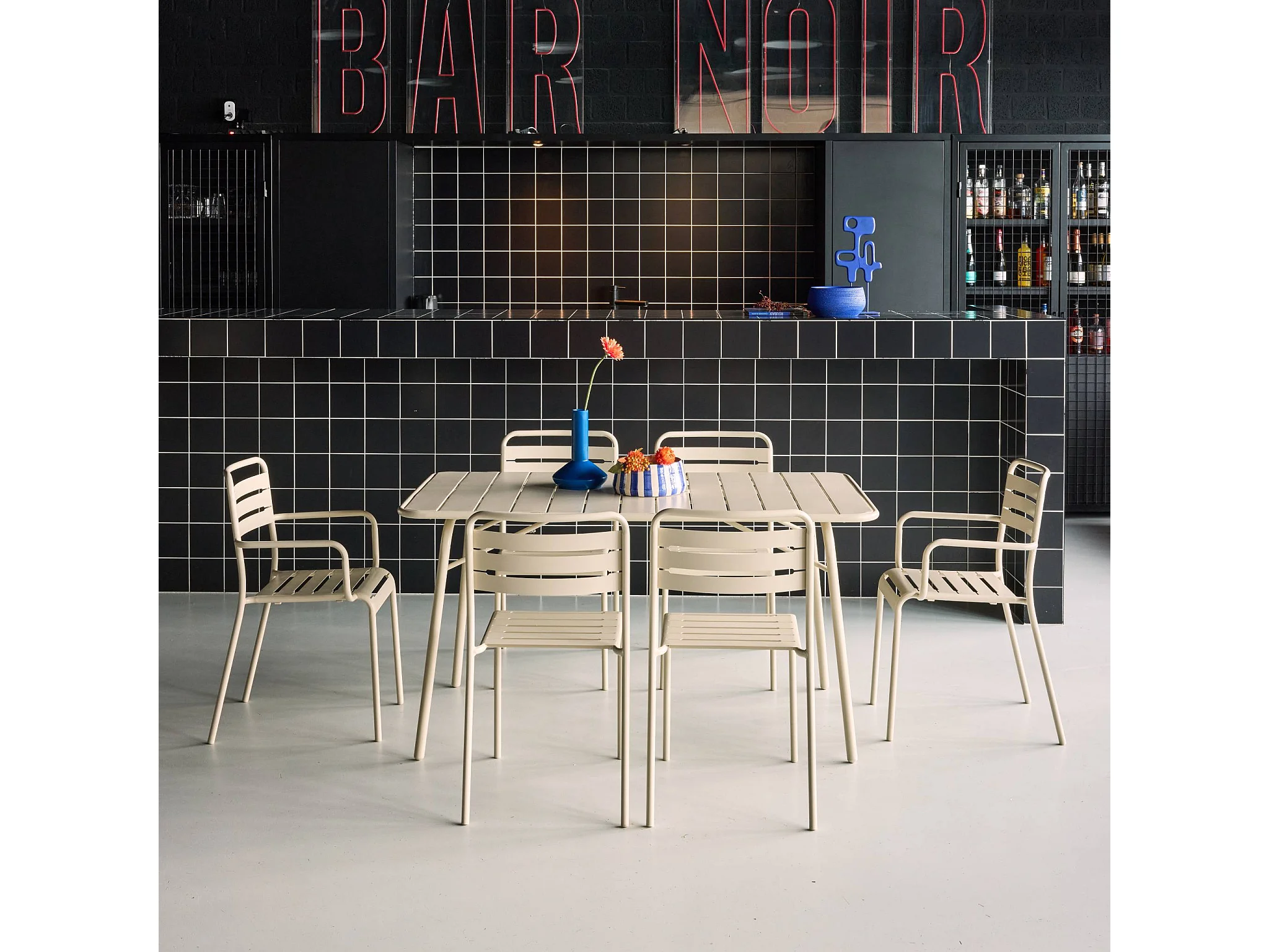 Table de jardin pliante métal + 6 assises 2 fauteuils 4 chaises. Amelia. beige. 141.2 x 80 x 72.5cm
