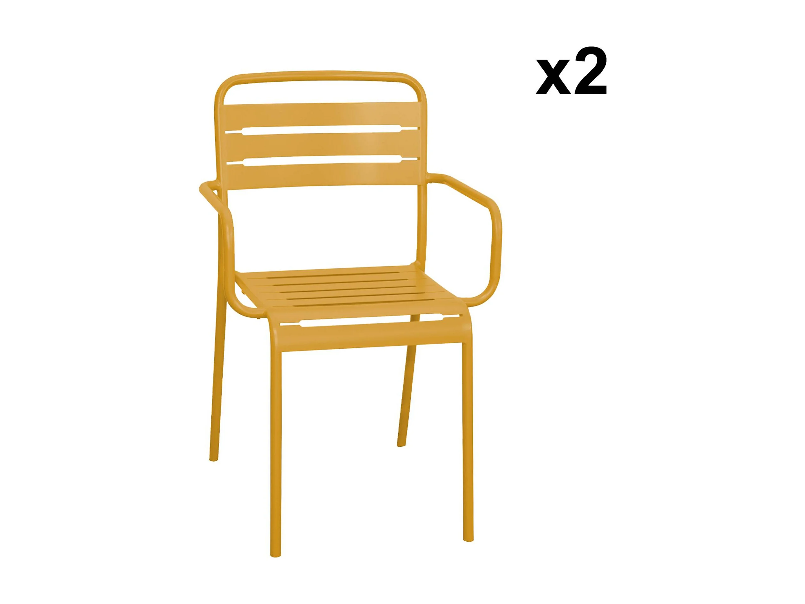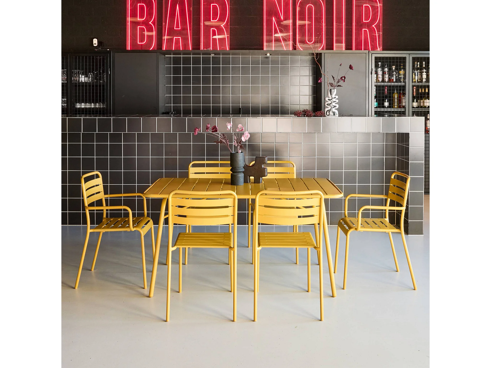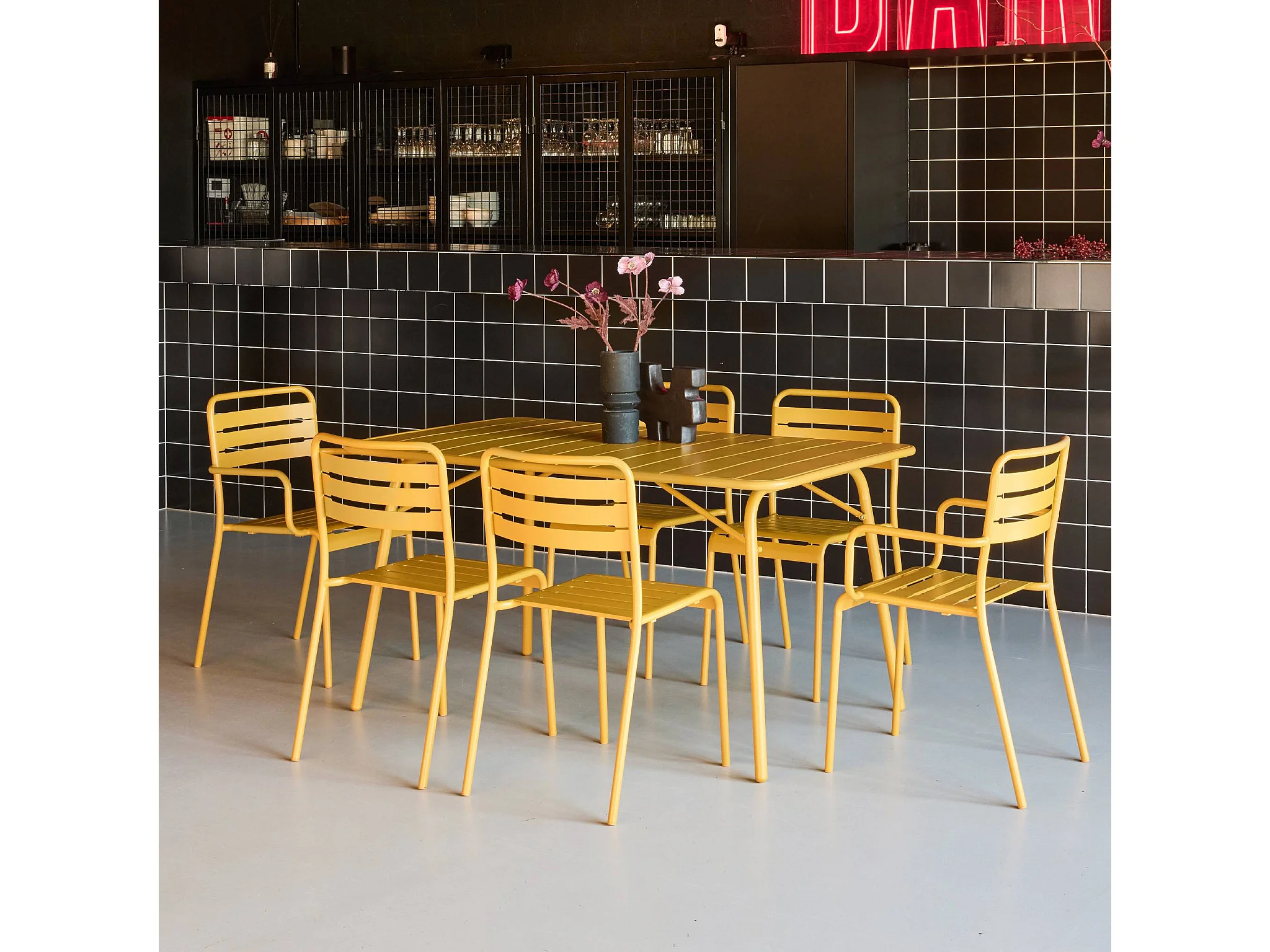 Table de jardin pliante métal + 6 assises 2 fauteuils 4 chaises. Amelia. ocre. 141.2 x 80 x 72.5cm