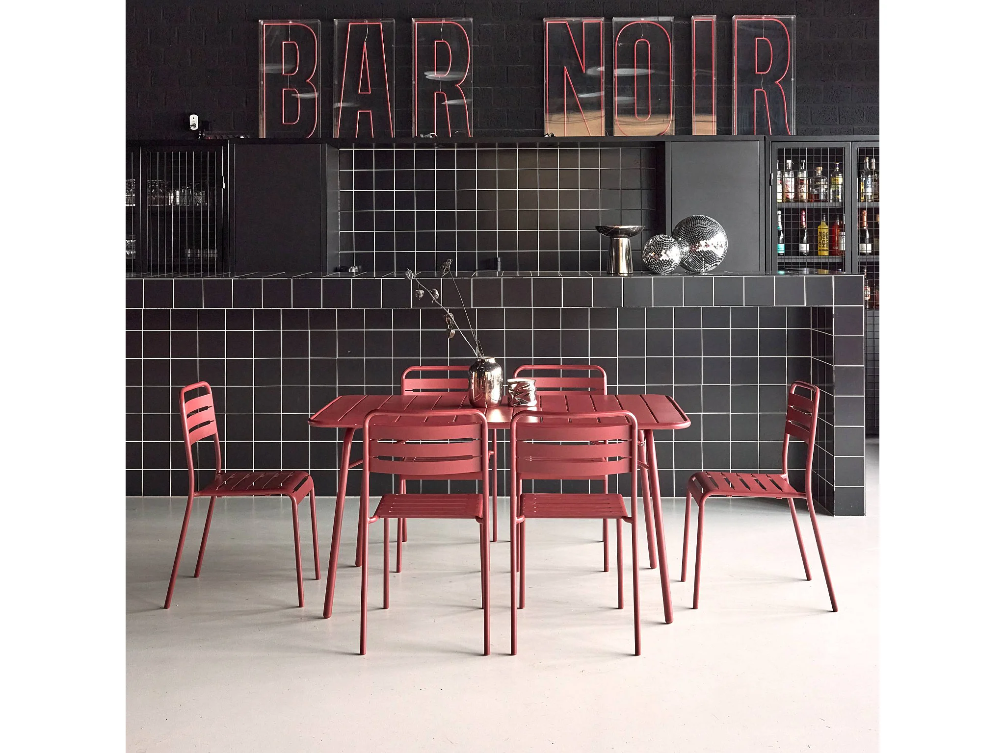 Table de jardin pliante métal + 6 assises. Amelia. terre de sienne. 141.2 x 80 x 72.5cm