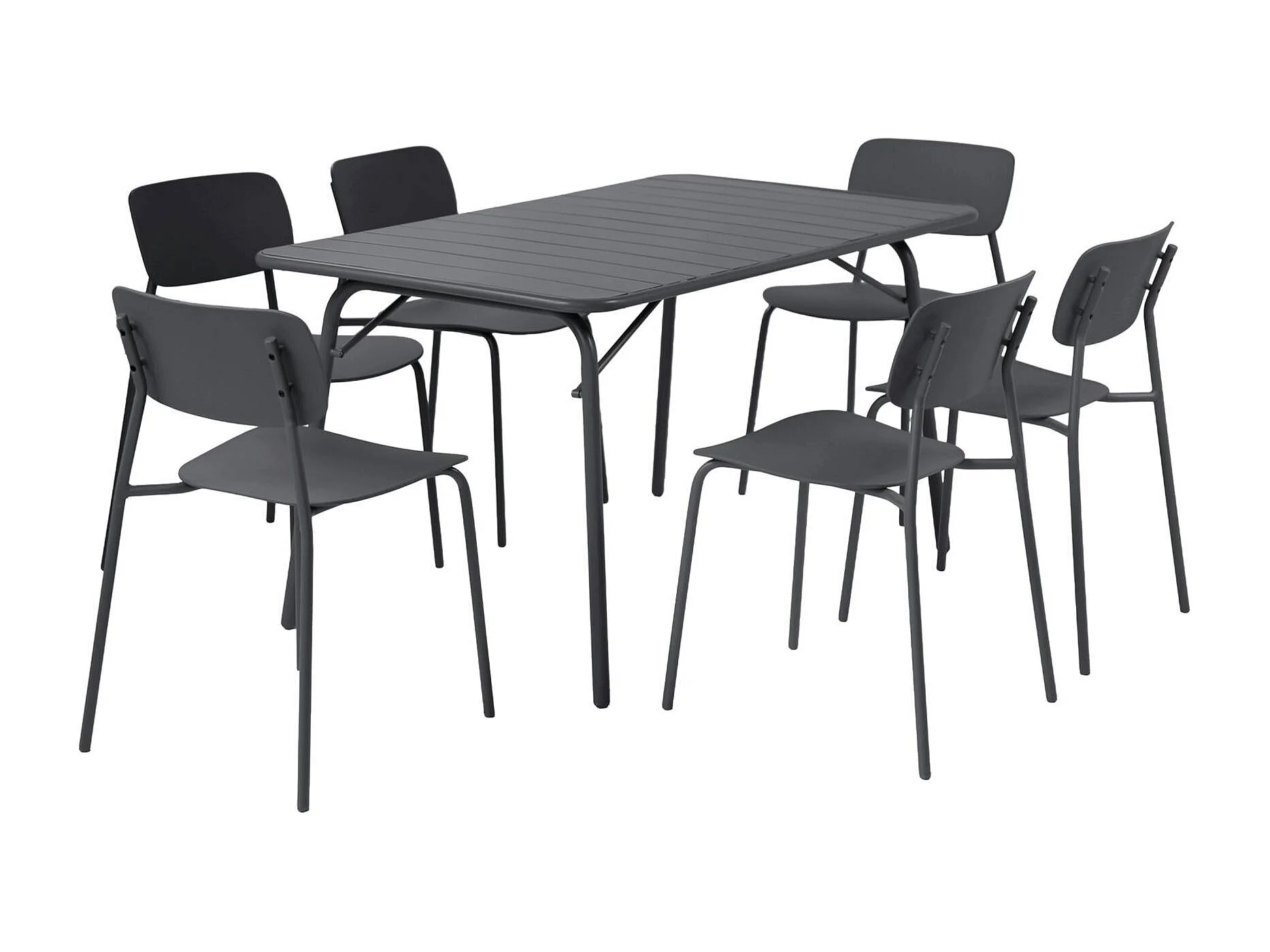 Table de jardin pliante métal + 6 assises anthracite. Amelia + Liva 141.2 x 80 x 72.5cm