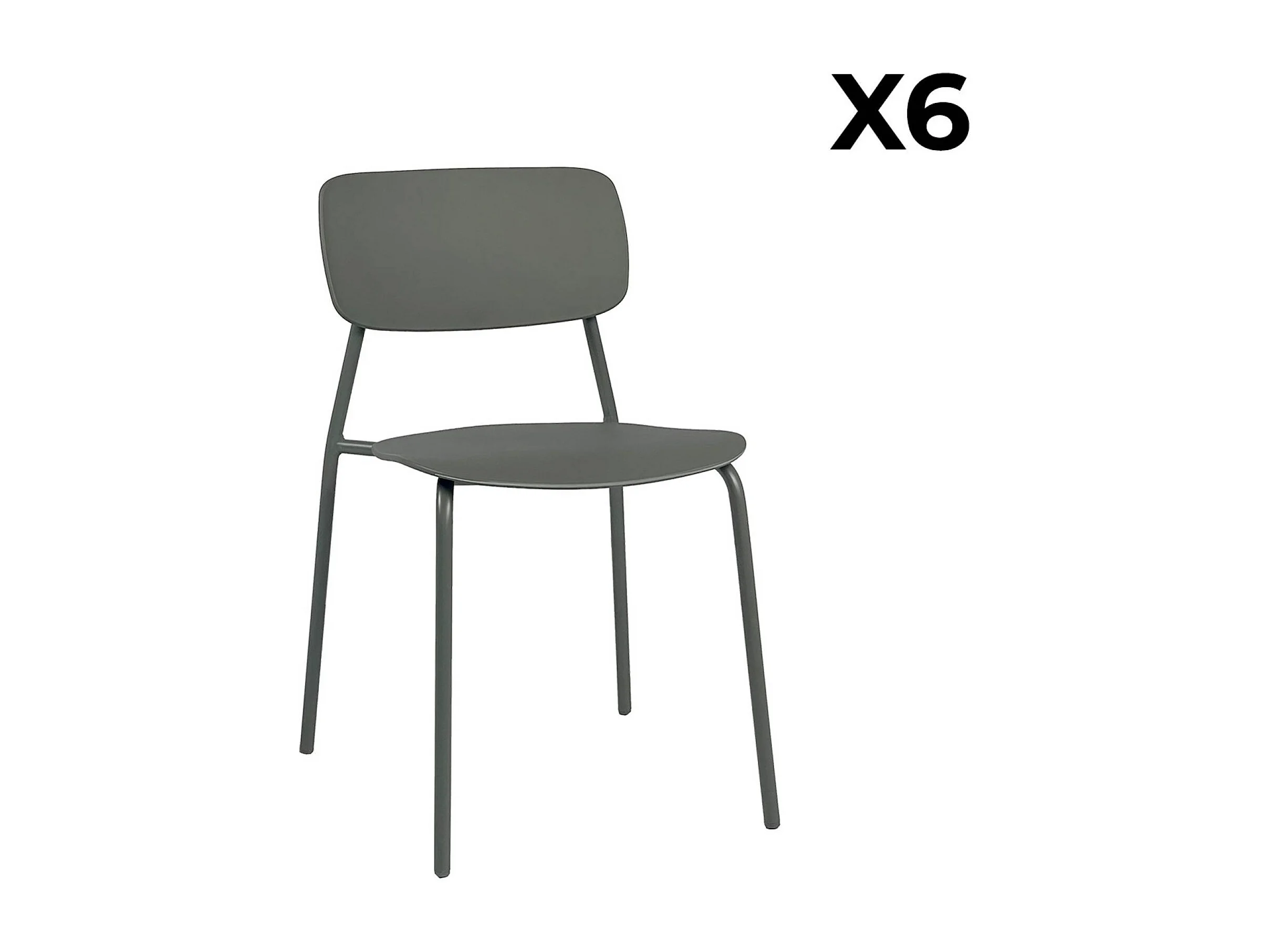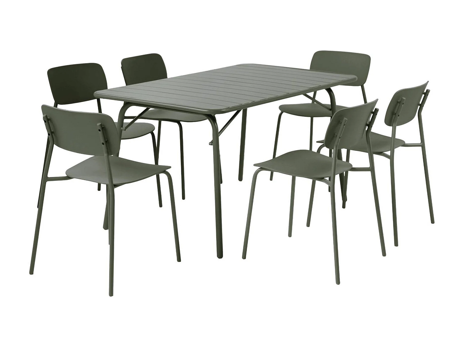 Table de jardin pliante métal + 6 assises kaki. Amelia + Liva 141.2 x 80 x 72.5cm