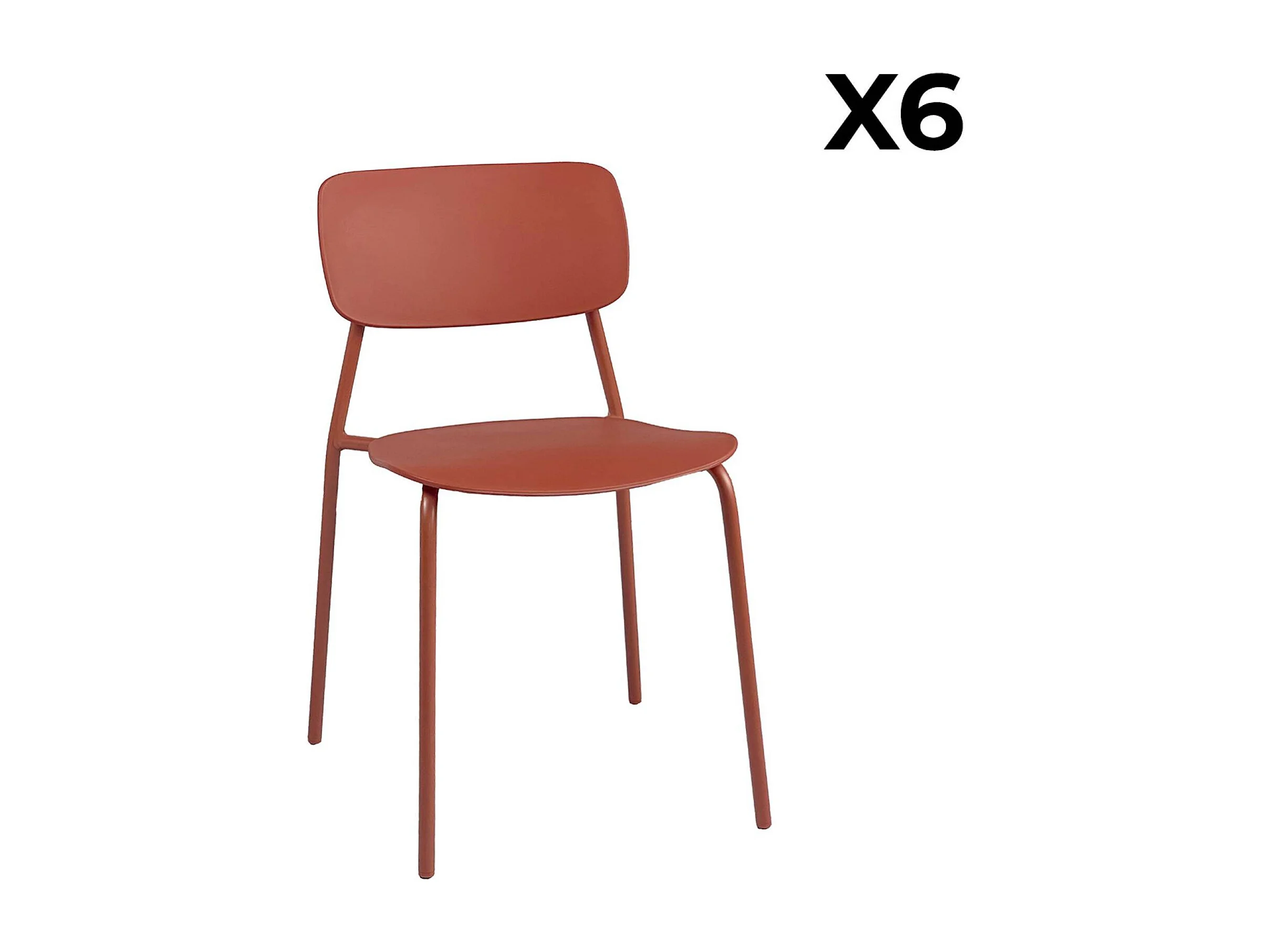 Table de jardin pliante métal + 6 assises terracotta. Amelia + Liva 141.2 x 80 x 72.5cm