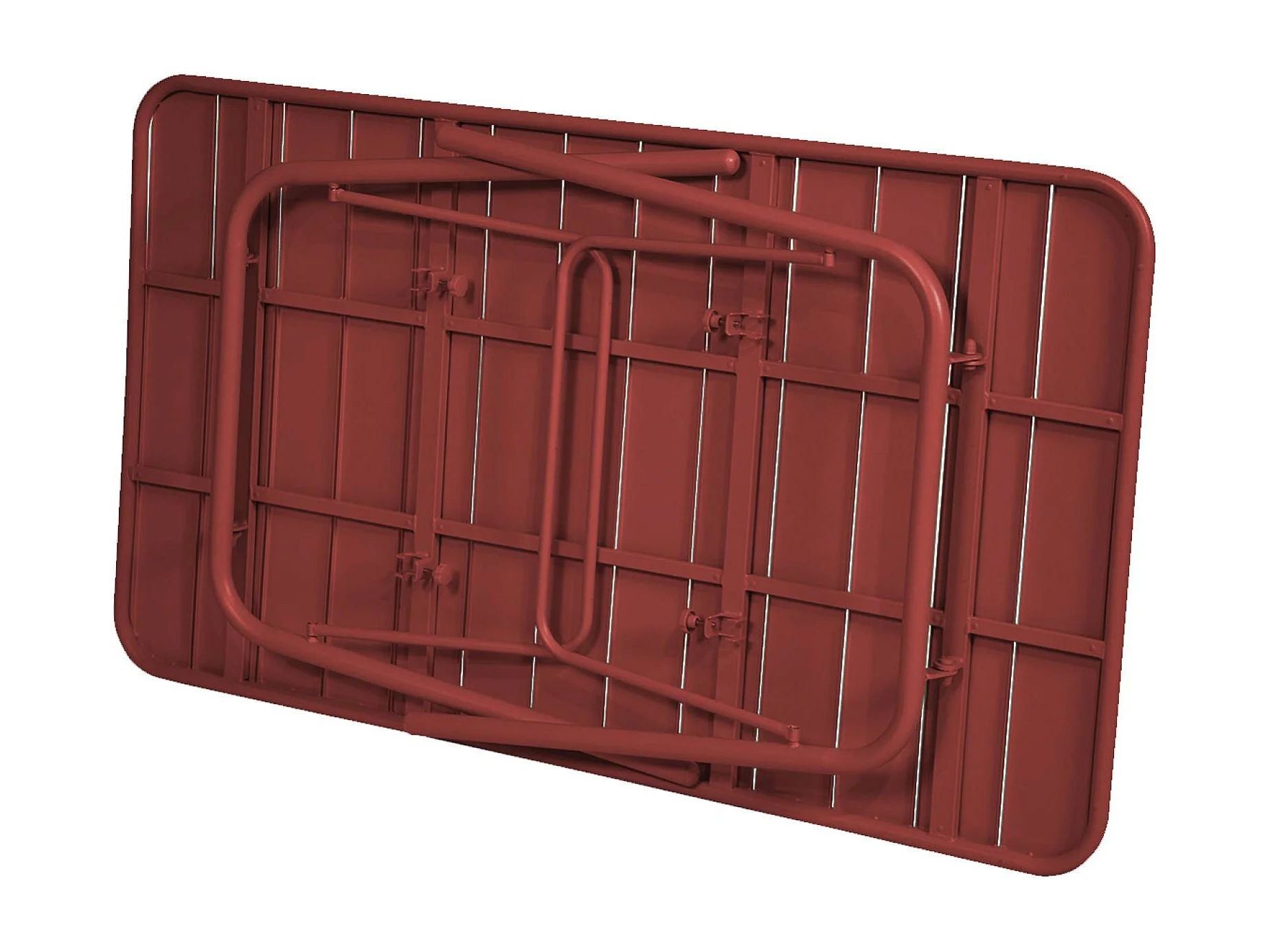 Table de jardin pliante métal 6 places. terre de sienne. Amelia. 140x80cm. traitement antirouille. lattes et bords arrondis