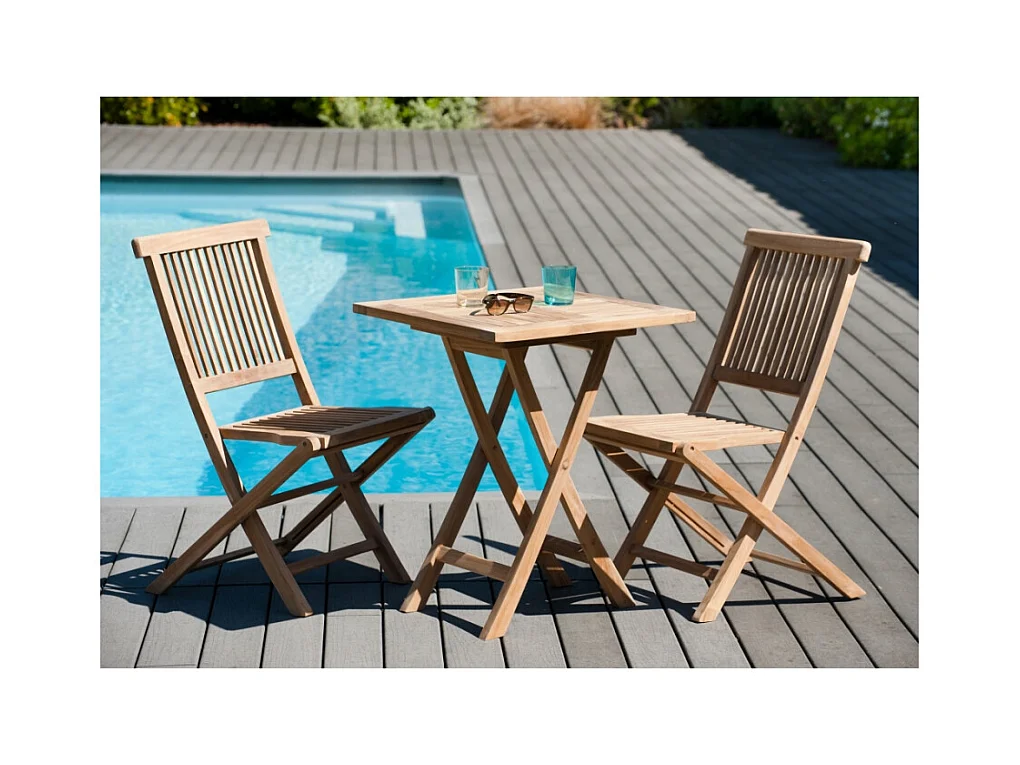 FUN - Table de jardin 2 personnes, carrée pliante 60x60cm en bois Teck