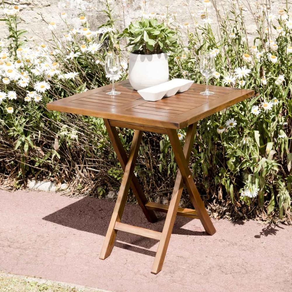 MAEVA - Table de jardin 2 personnes - carrée pliante 70x70cm en bois teck huilé