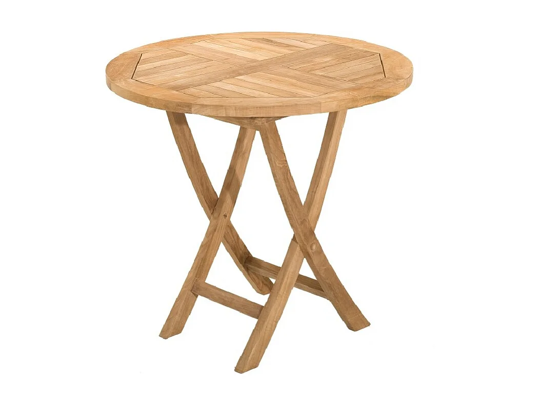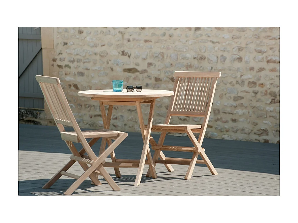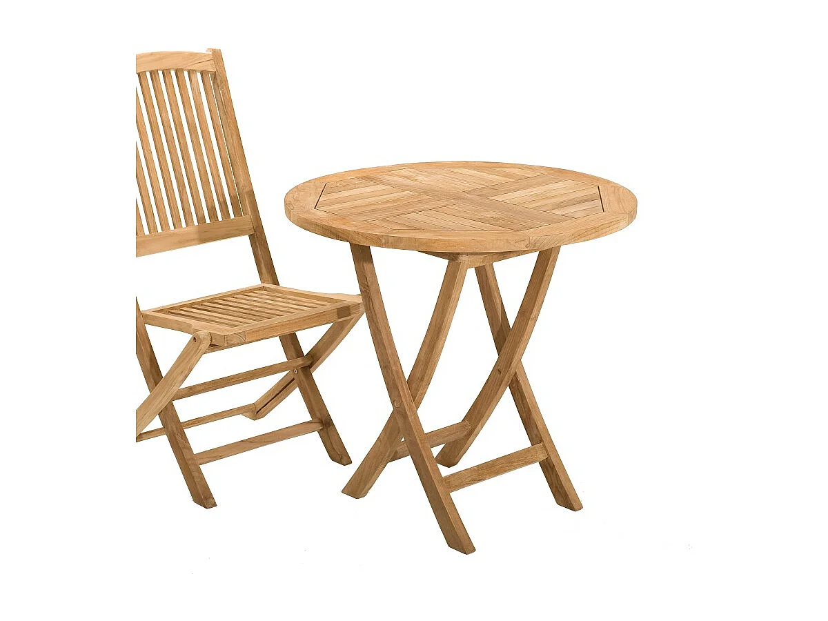 FUN - Table de jardin 2 personnes, ronde pliante 80 cm en bois teck