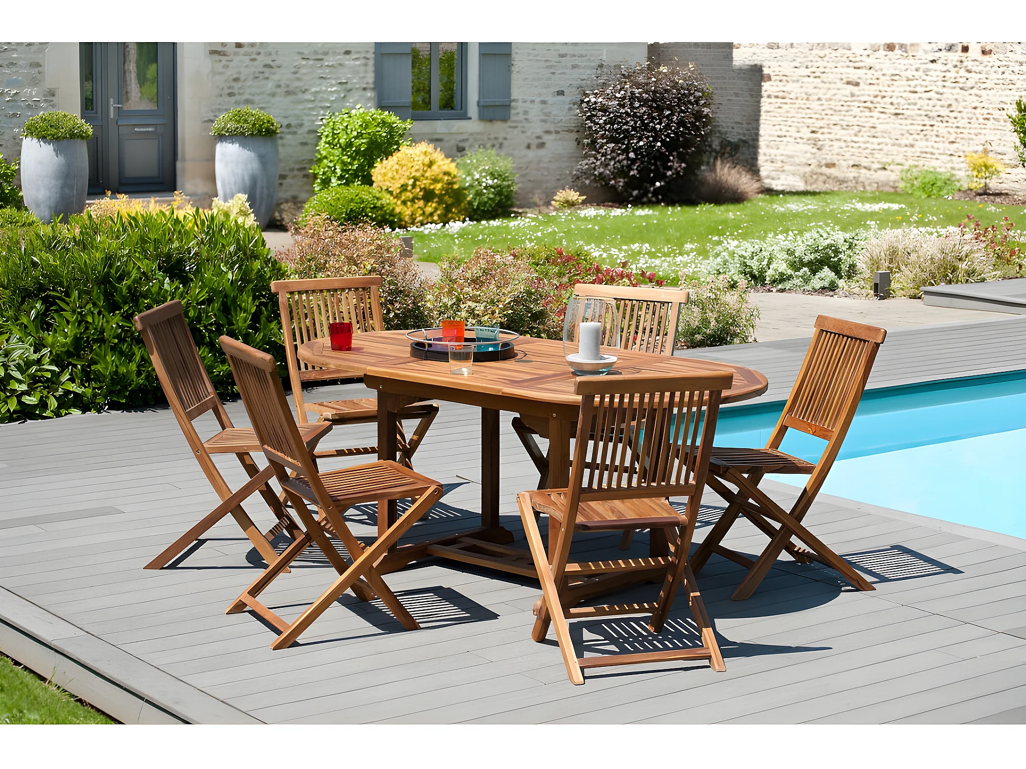 MAEVA - Table de jardin 4/6 pers. ovale ext. 120/180cm bois Teck huilé