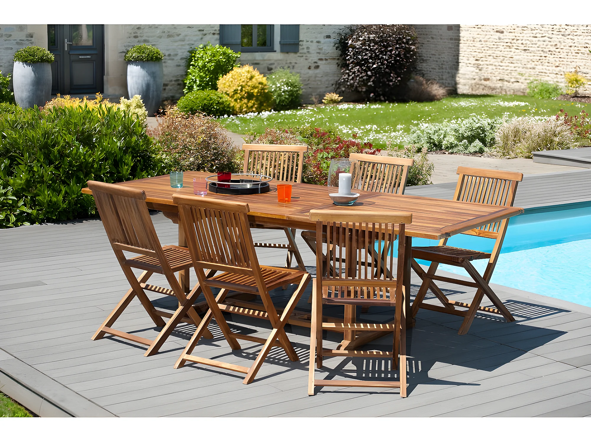 MAEVA - Table de jardin 4/6 pers. Rect. Ext. 120/180cm bois Teck huilé