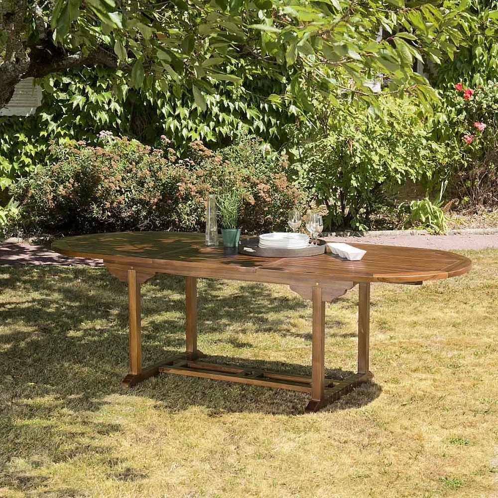 MAEVA - Table de jardin 8/10 personnes - table ovale extensible 180/240x100cm en bois teck huilé