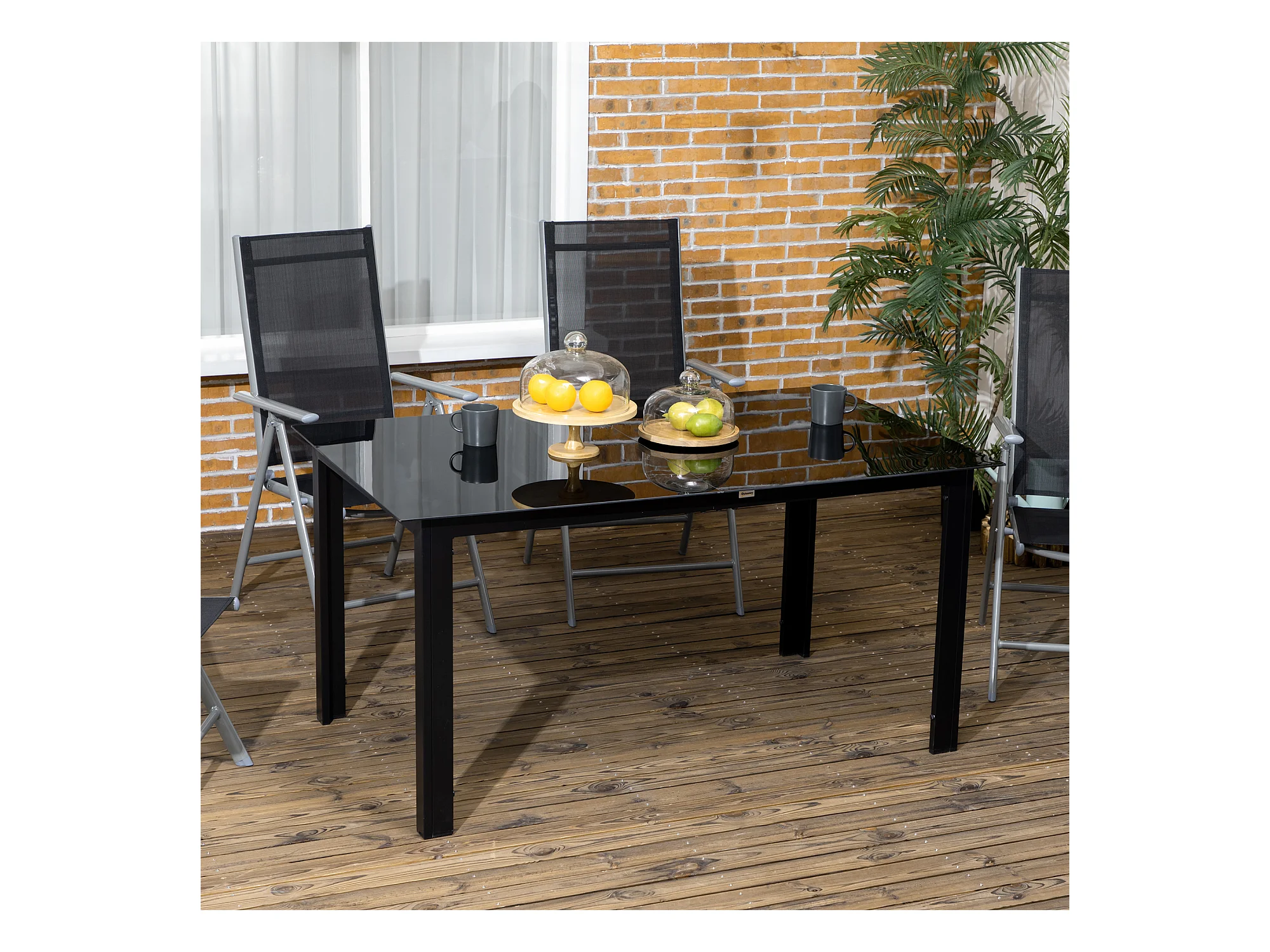 Table de jardin rectangulaire 6 personnes dim. 150L x 90l x 74H cm alu. plateau verre trempé noir