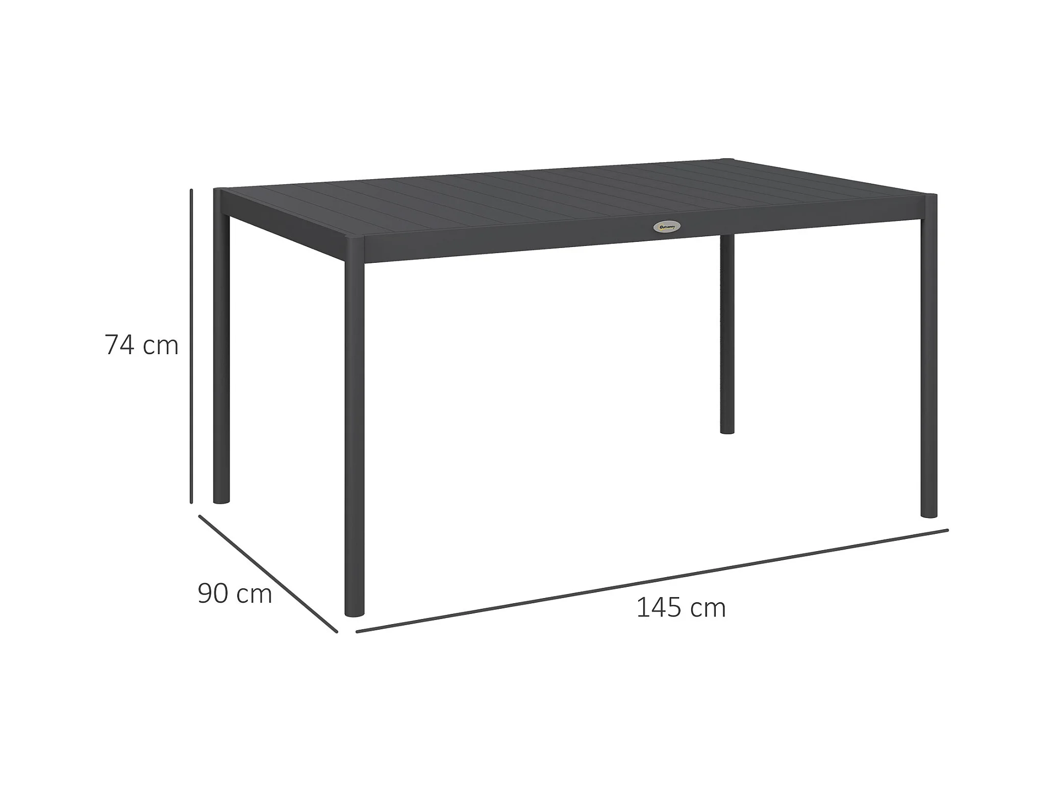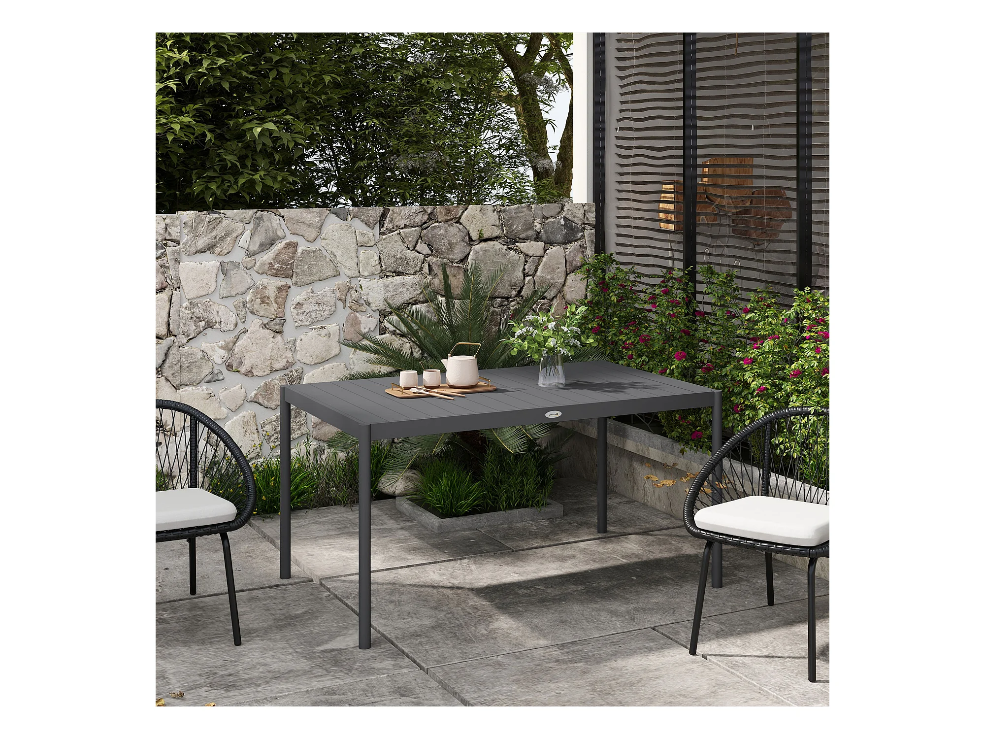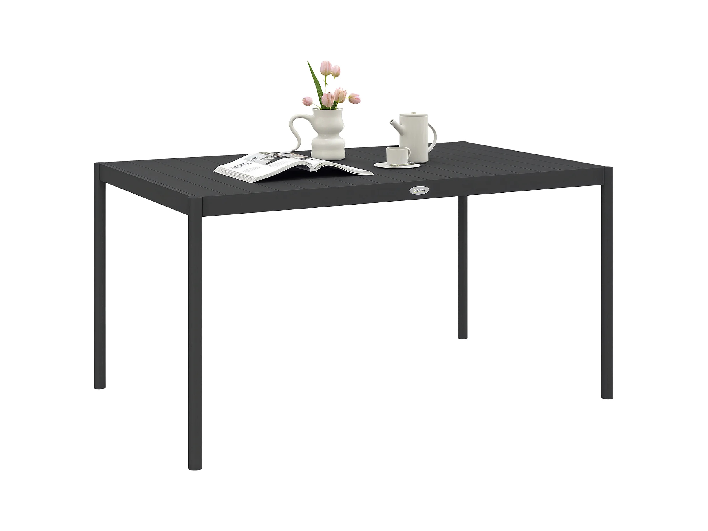 Table de jardin pliante métal 6 places. anthracite. Amelia. 140x80cm. traitement antirouille. lattes et bords arrondis