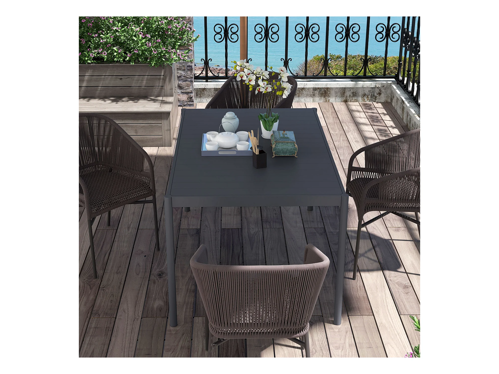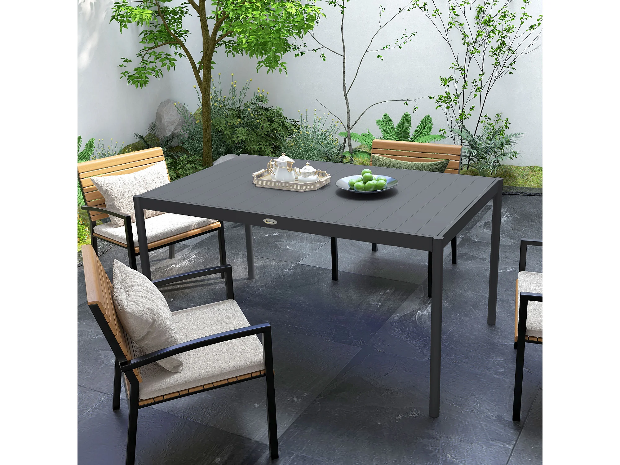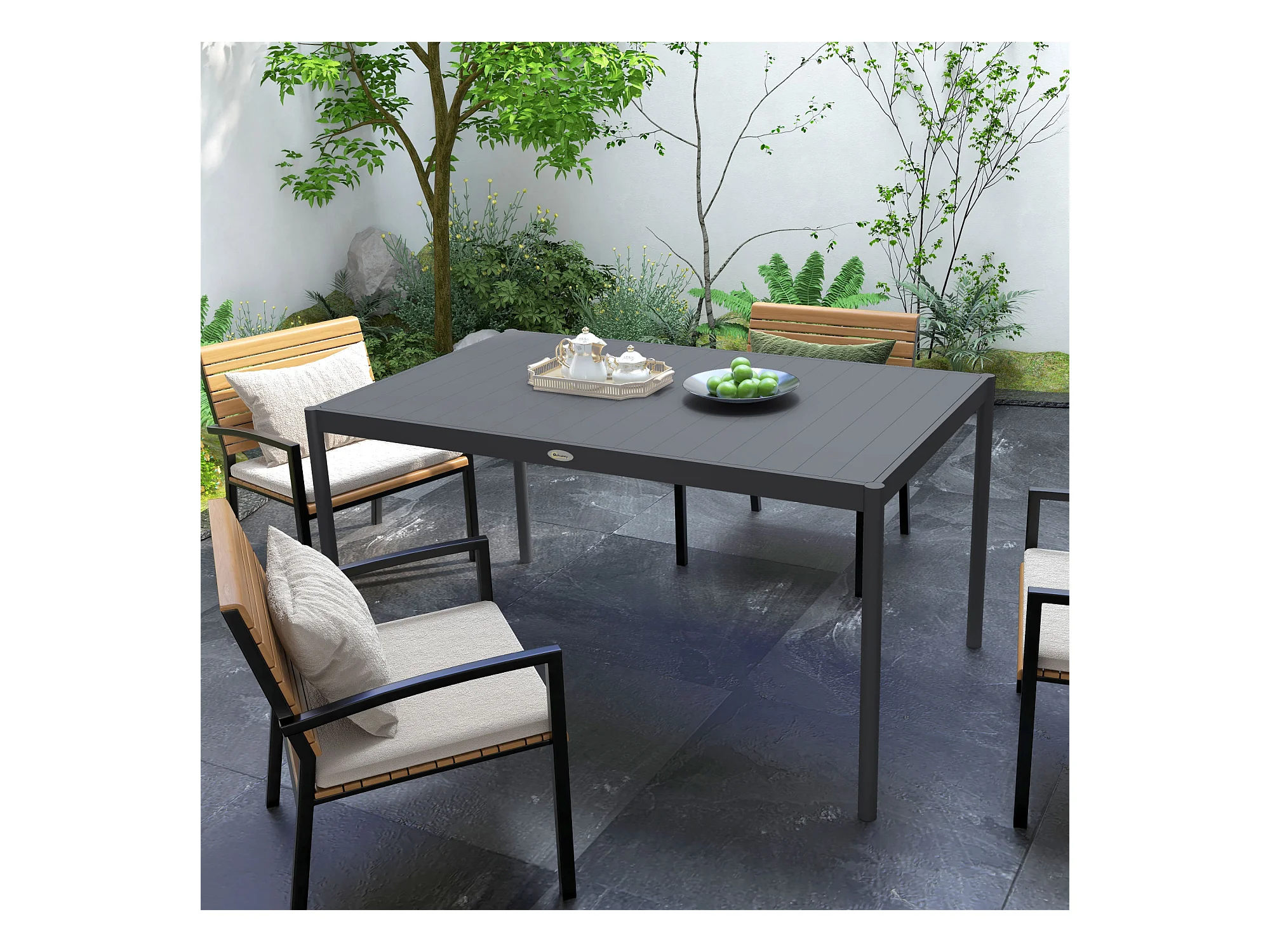 Table de jardin rectangulaire 6 personnes plateau lattes aspect bois alu gris