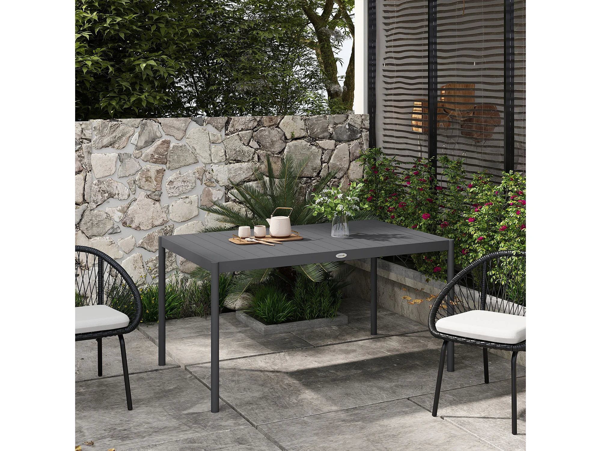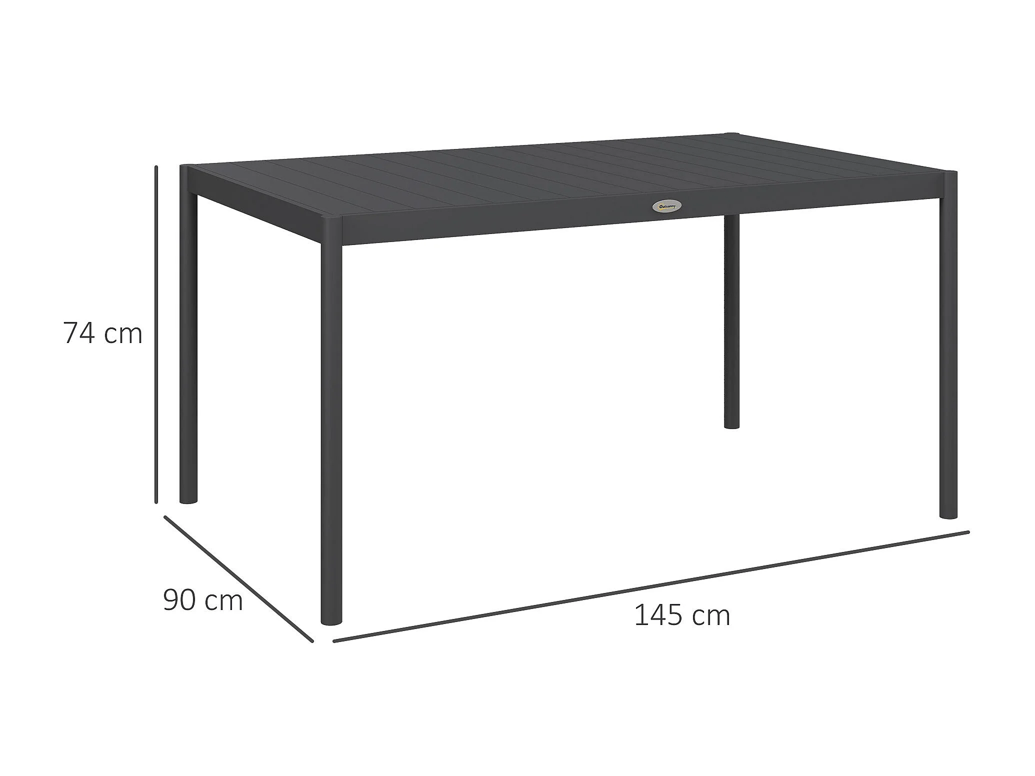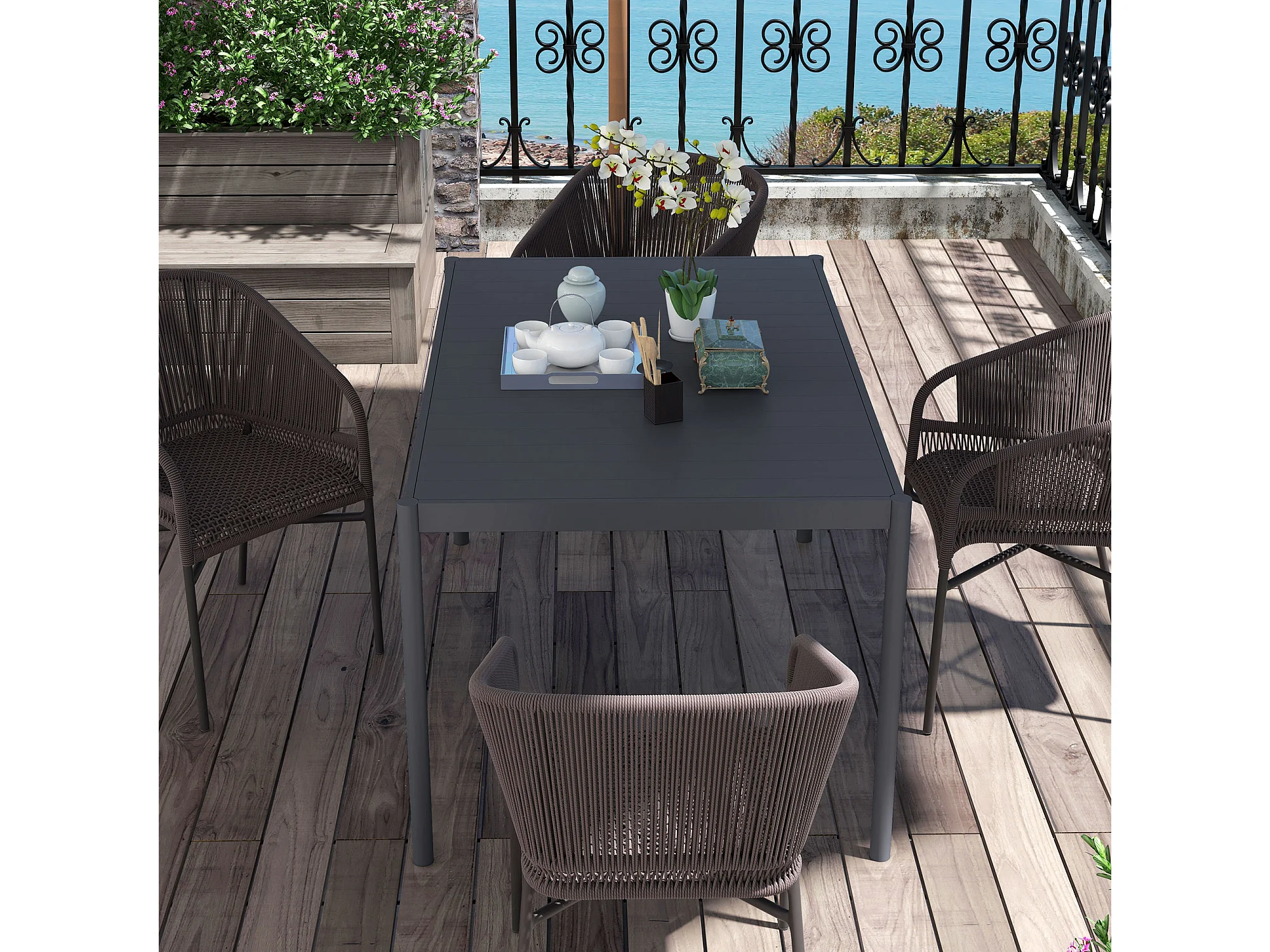 Table de jardin rectangulaire 6 personnes plateau lattes aspect bois alu gris
