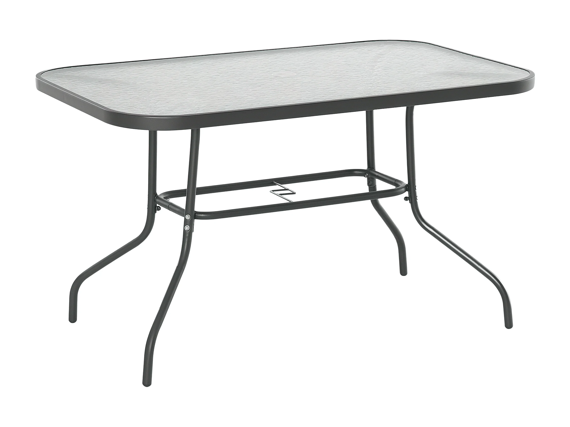 Table de jardin rectangulaire dim. 120L X 80l x 70H cm métal époxy gris plateau verre trempé