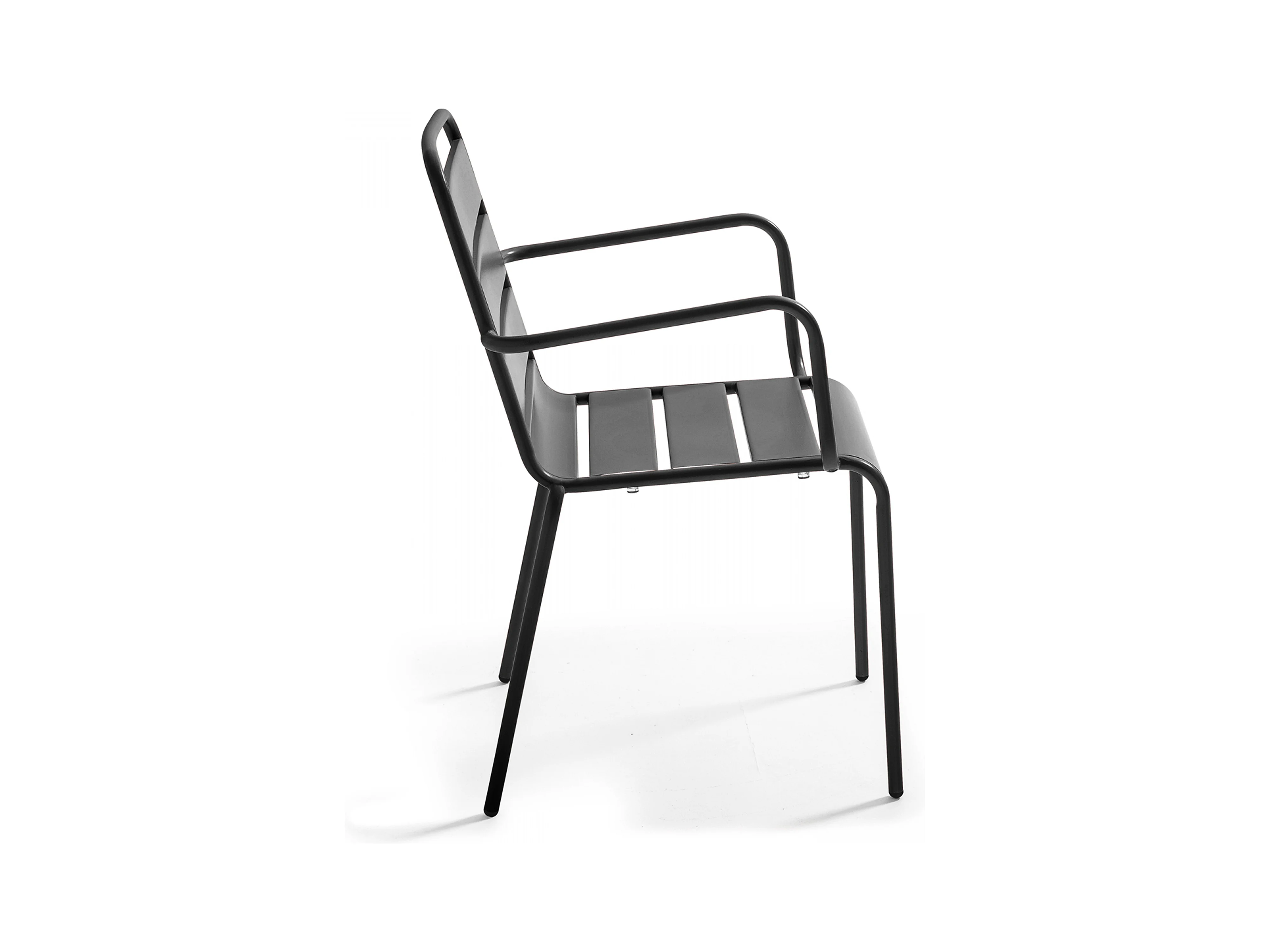 Table de jardin ronde 4 fauteuils acier gris - Tivoli