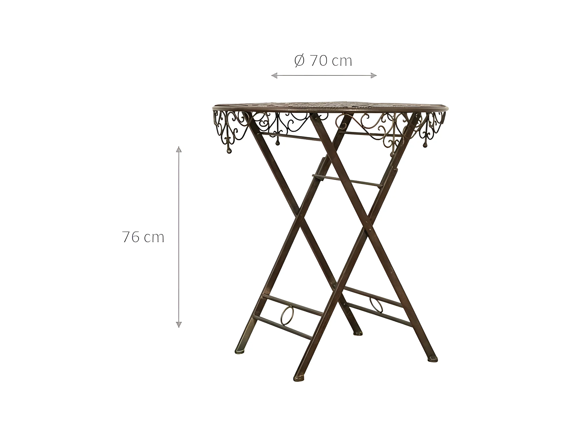 BISCOTTINI Table - Fer Forgé Finition Antique - Table d'Extérieur - Mobilier de Jardin - Terrasse - Balcon - Table en Métal - Table Basse - 76x70cm