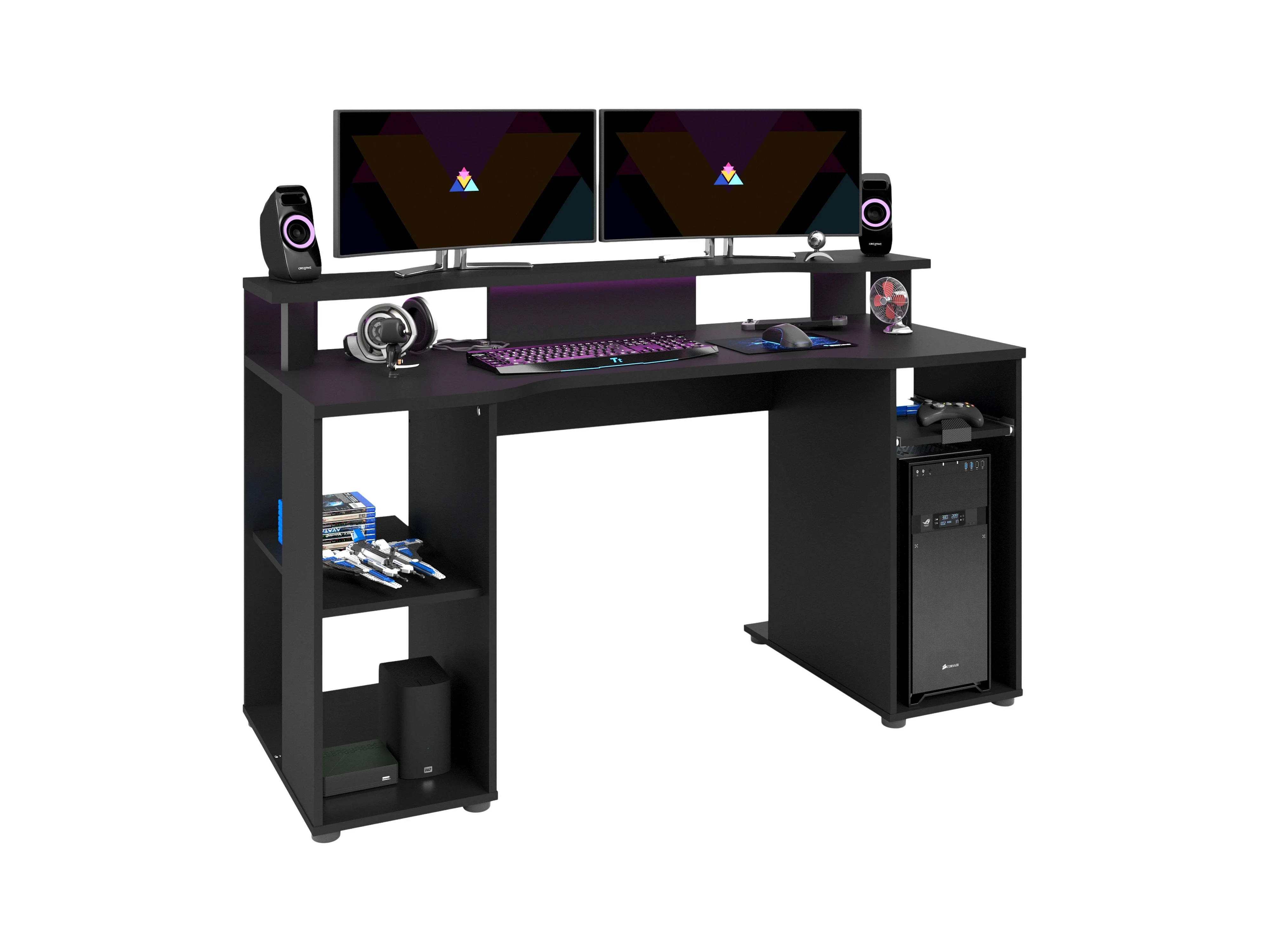 Table de jeu LEVEL avec éclairage LED, noire, design 90 x 150 x 60 cm