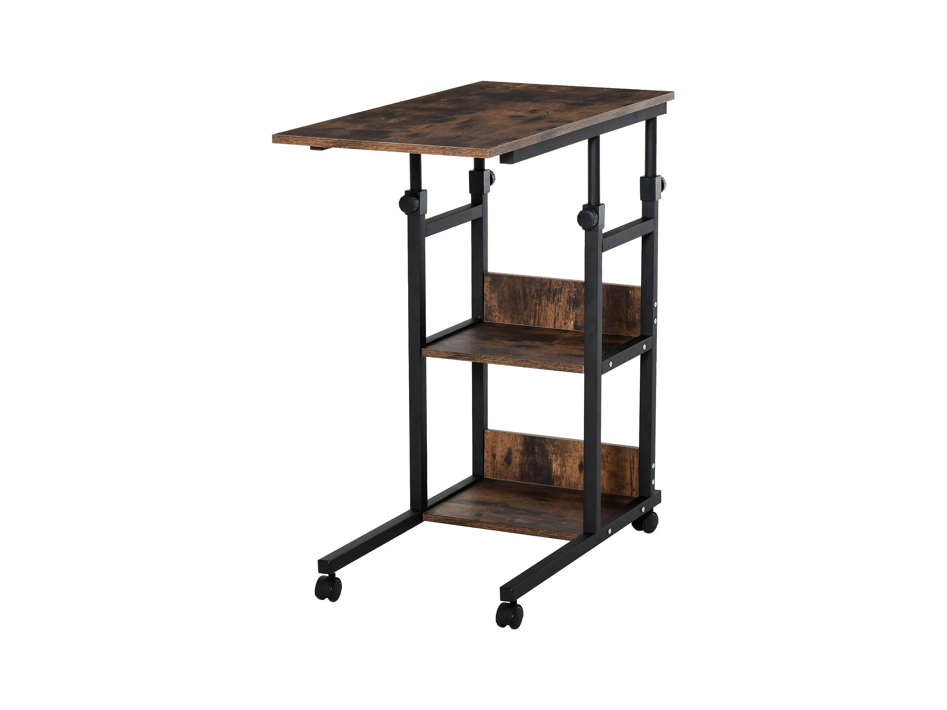 Table d’appoint à roulette avce plateau réglable, cadre en acier, (brun clair)