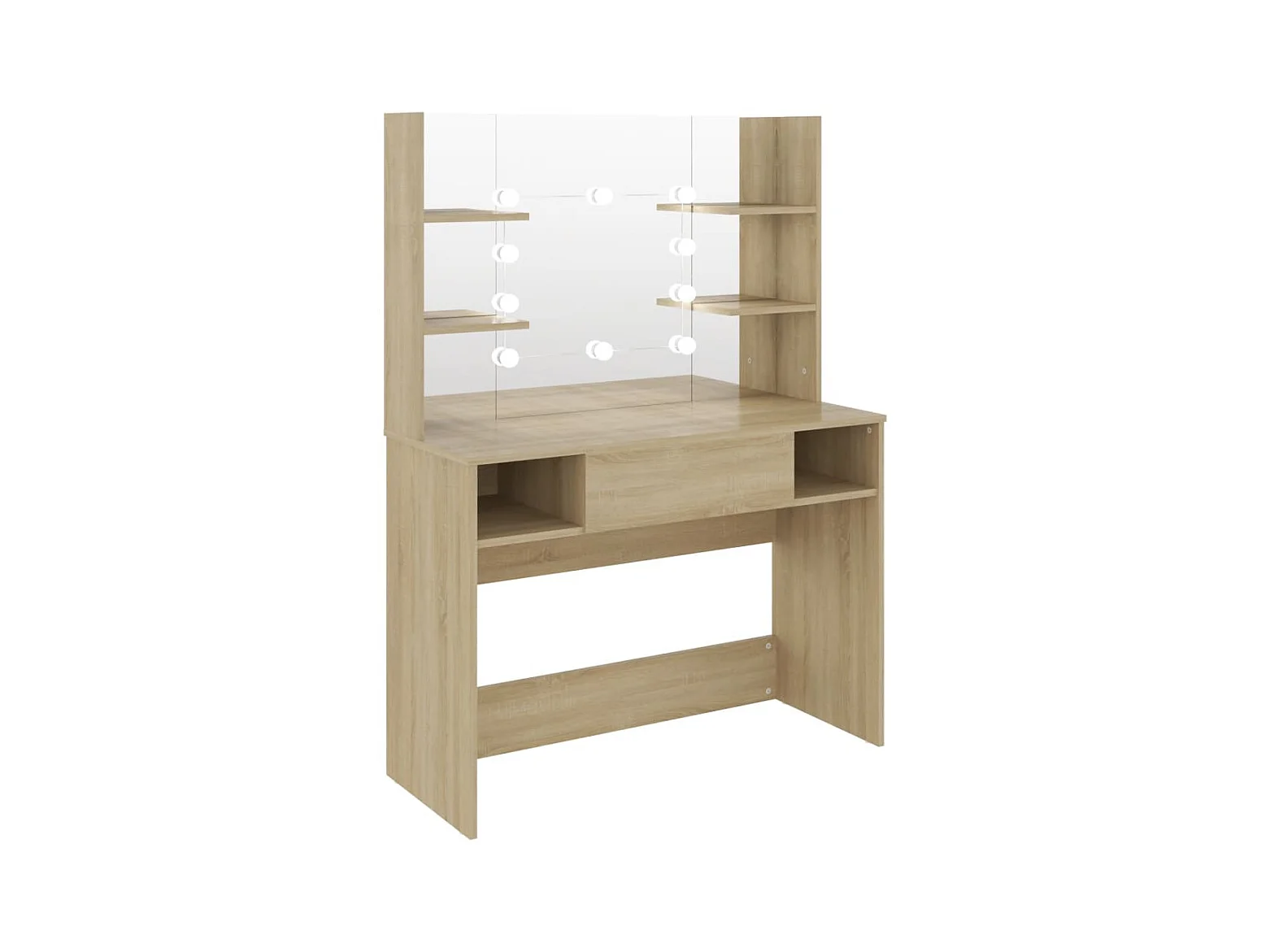 Table de maquillage avec éclairage LED 100x40x135 MDF Chêne