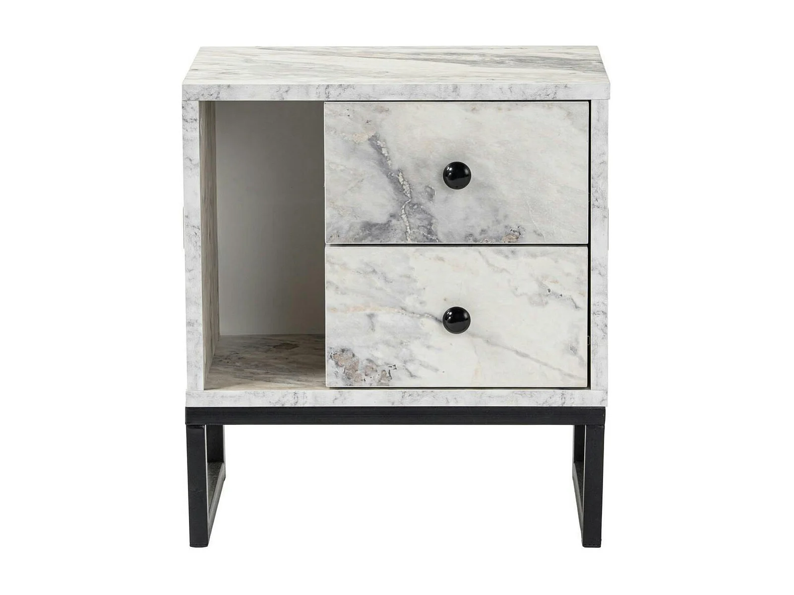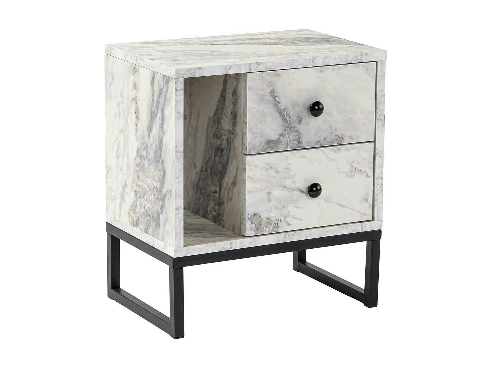 Table de nuit 2 tiroirs 1 niche, effet marbre blanc JENA