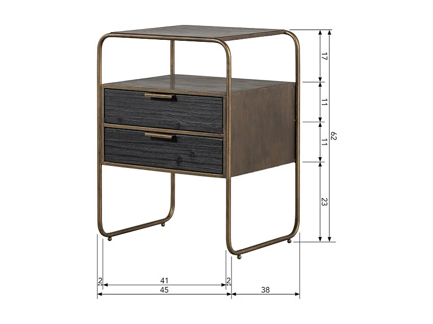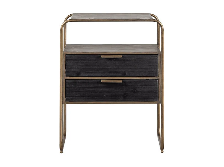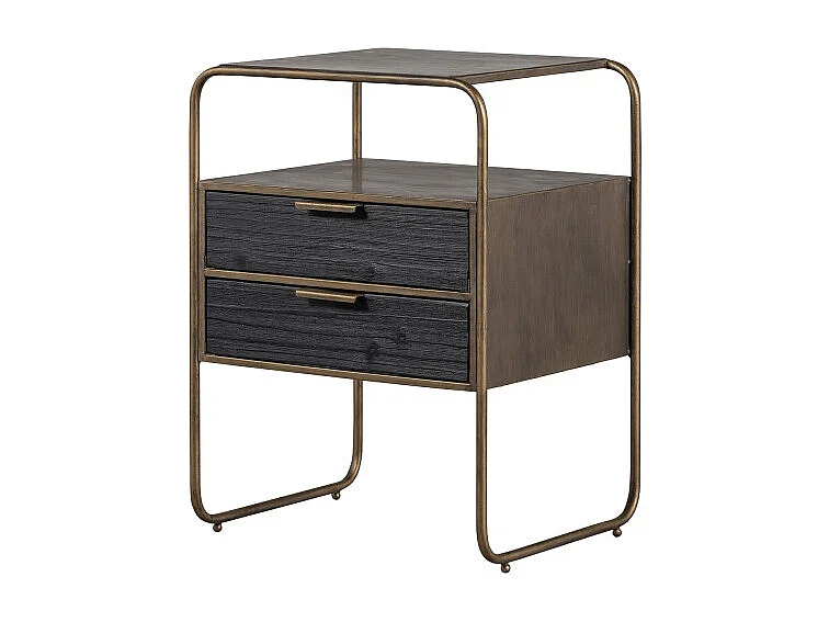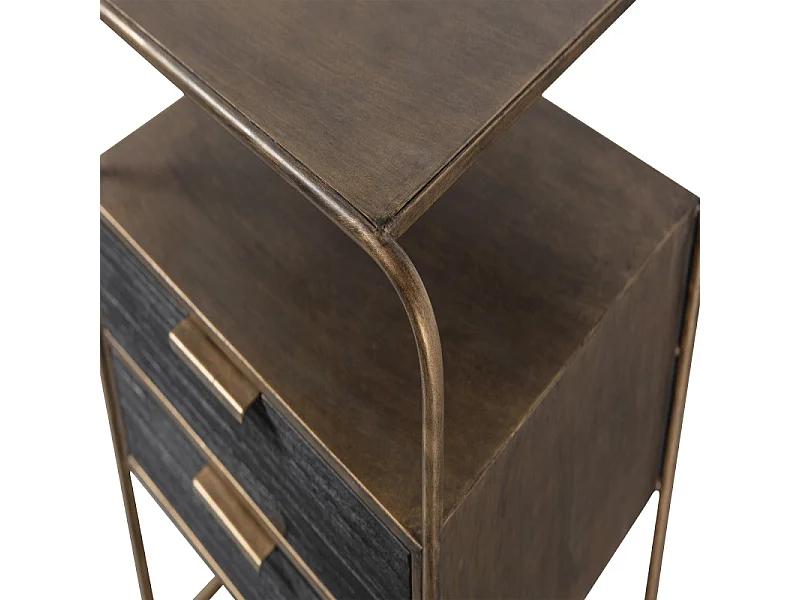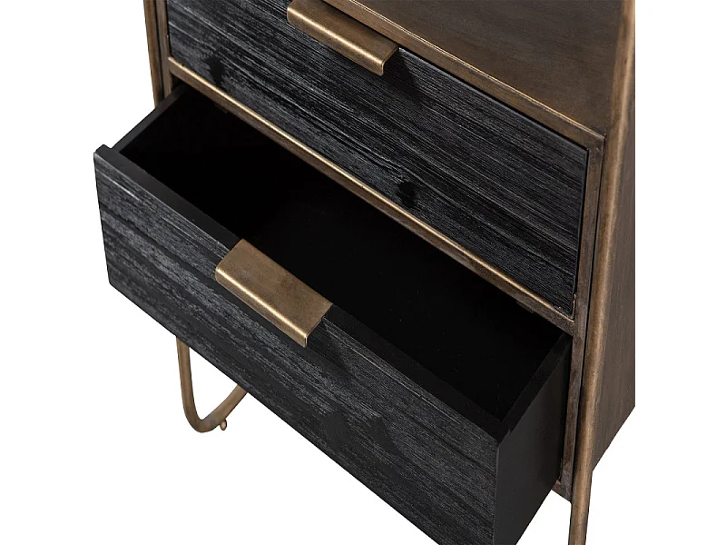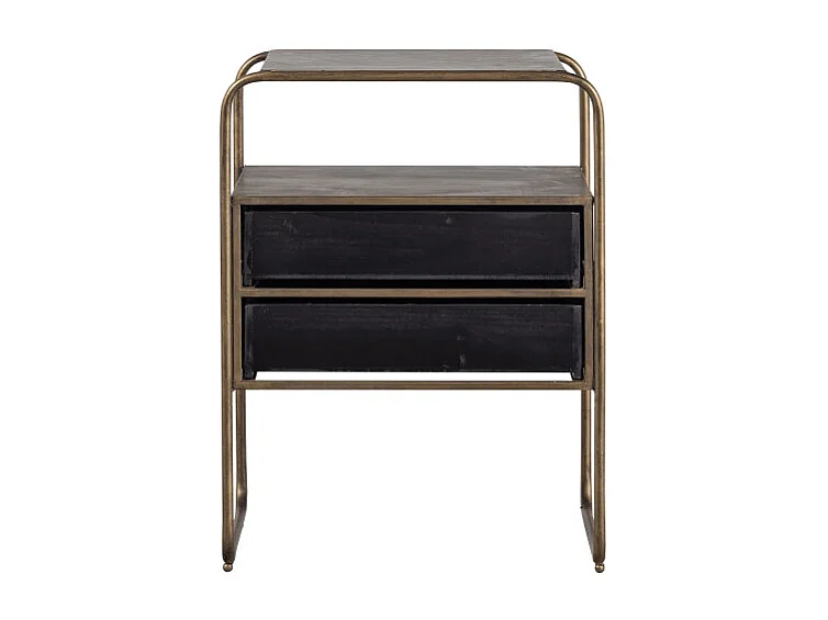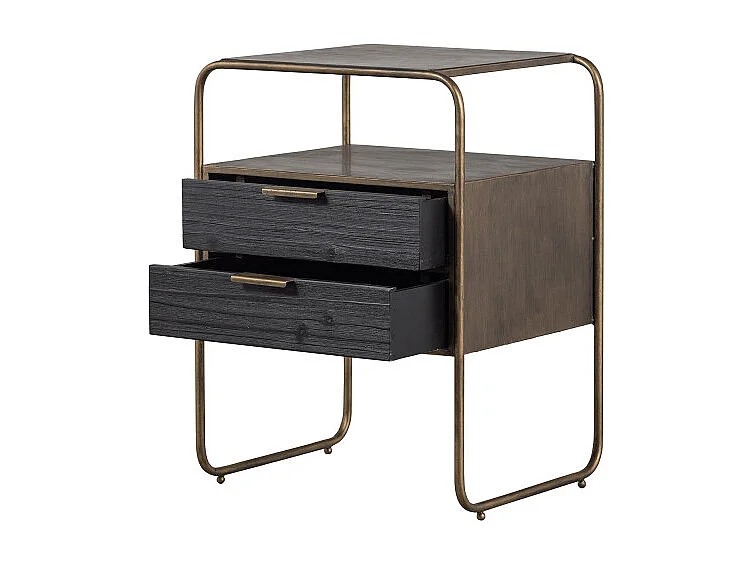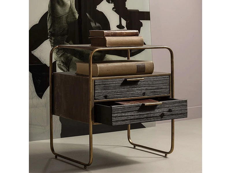 Table de nuit 2 tiroirs en métal revêtement laiton et bois HYPPO
