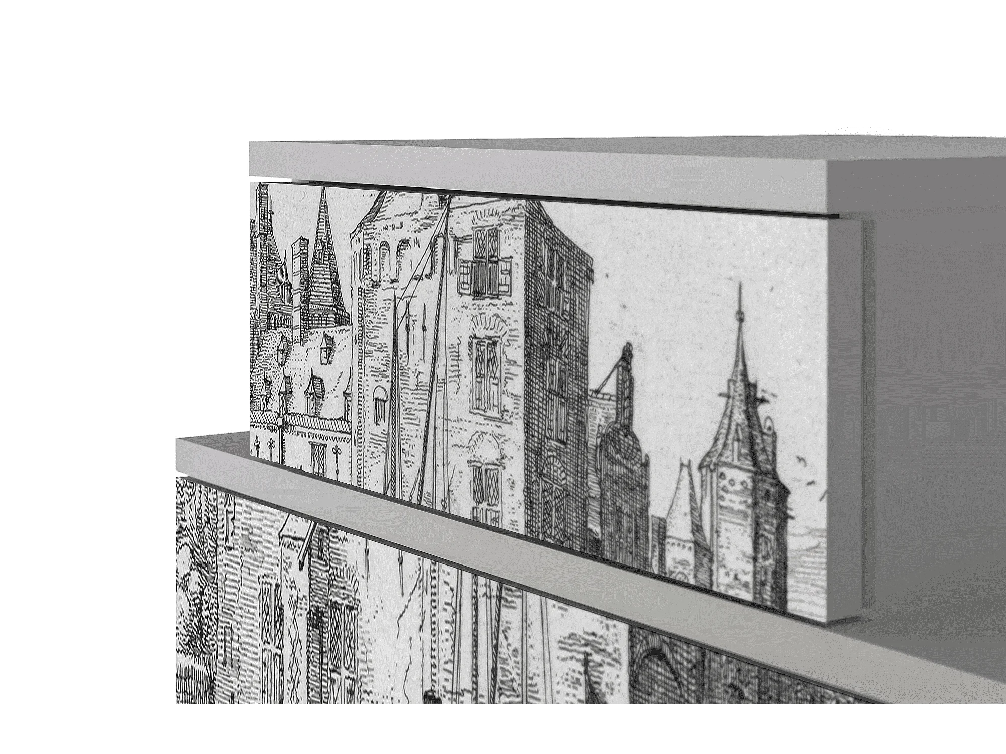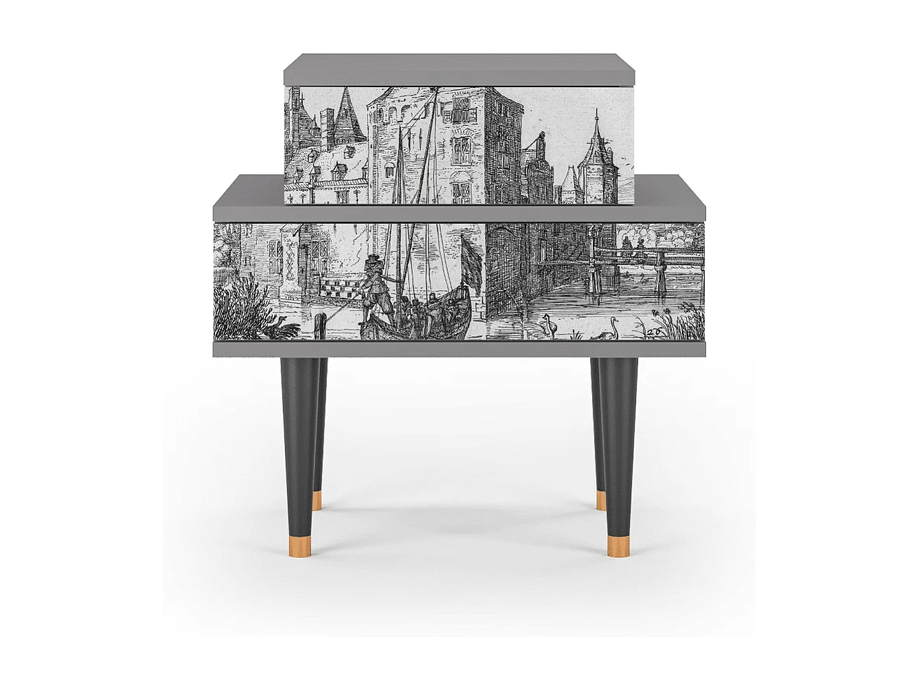 Table de nuit - 58х58х41 cm - NS1 - Castle with Bridge, Gris
