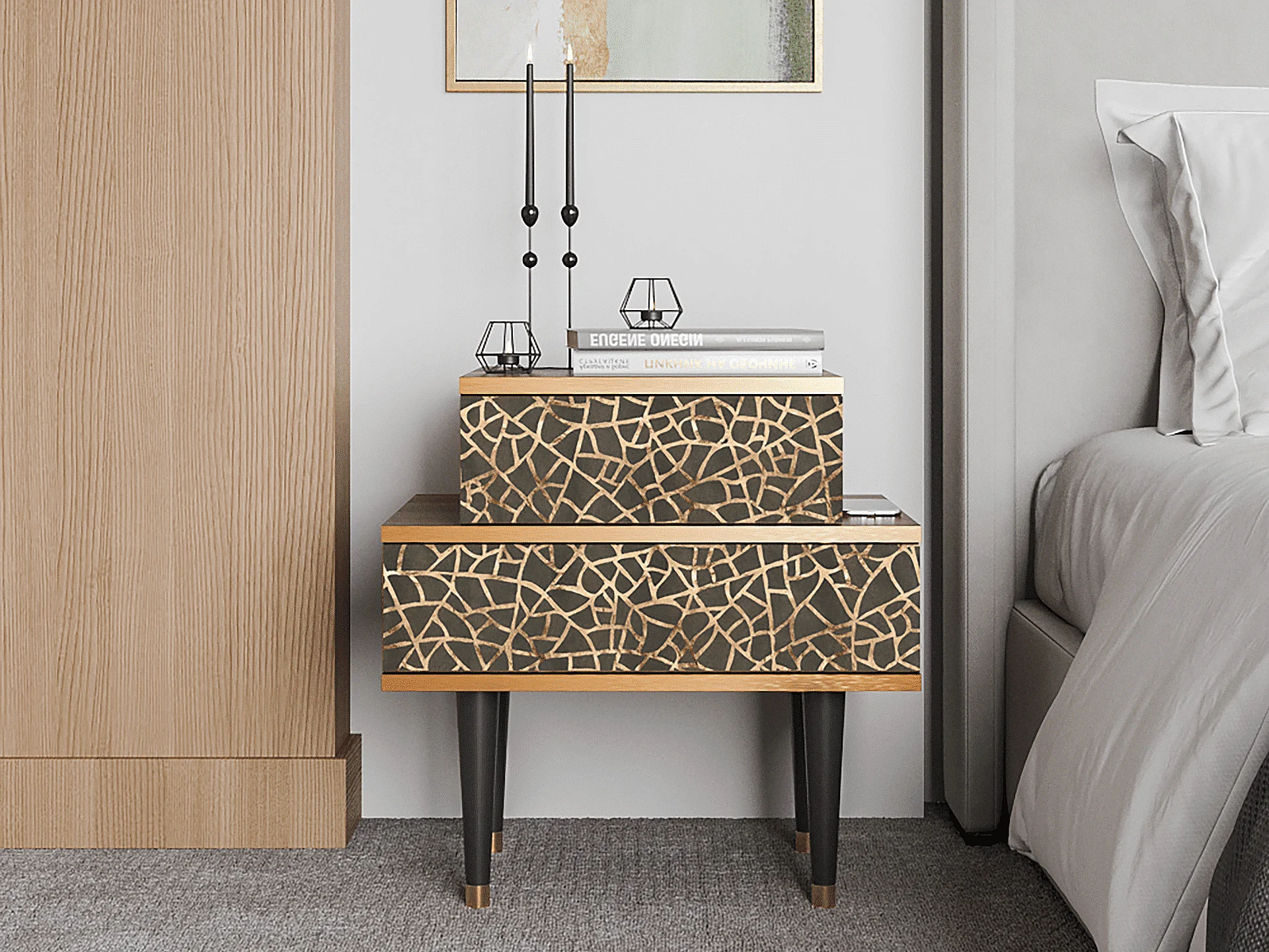 Table de nuit - 58х58х41 cm - NS1 - Enlarged Leaf, Noyer