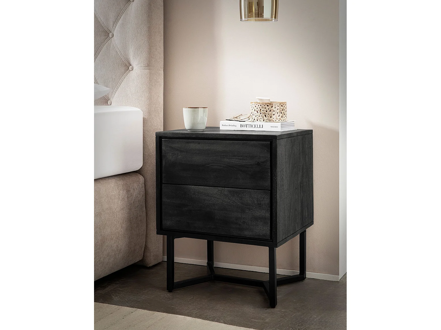 Table de Nuit Bois Massif 57 cm Chevet Tiroirs Lit Boxspring Industriel