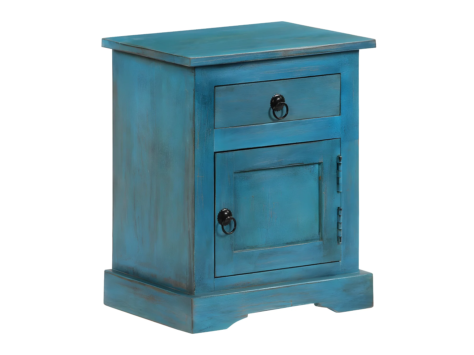 Table de nuit chevet commode armoire meuble chambre bois de manguier massif 40 x 30 x 50 cm bleu 1402109