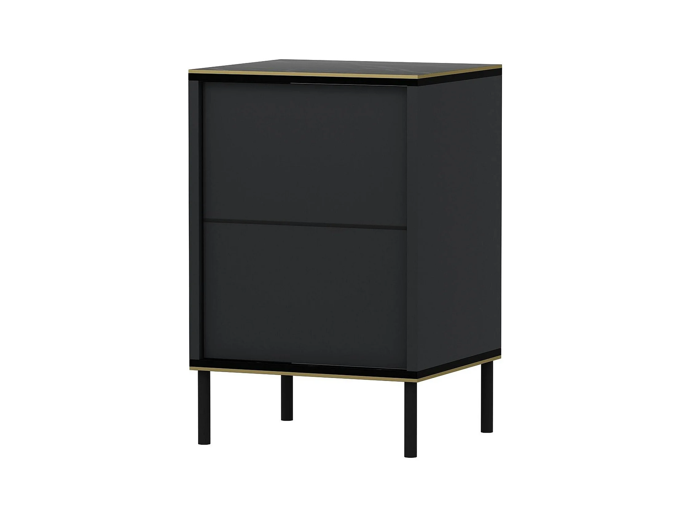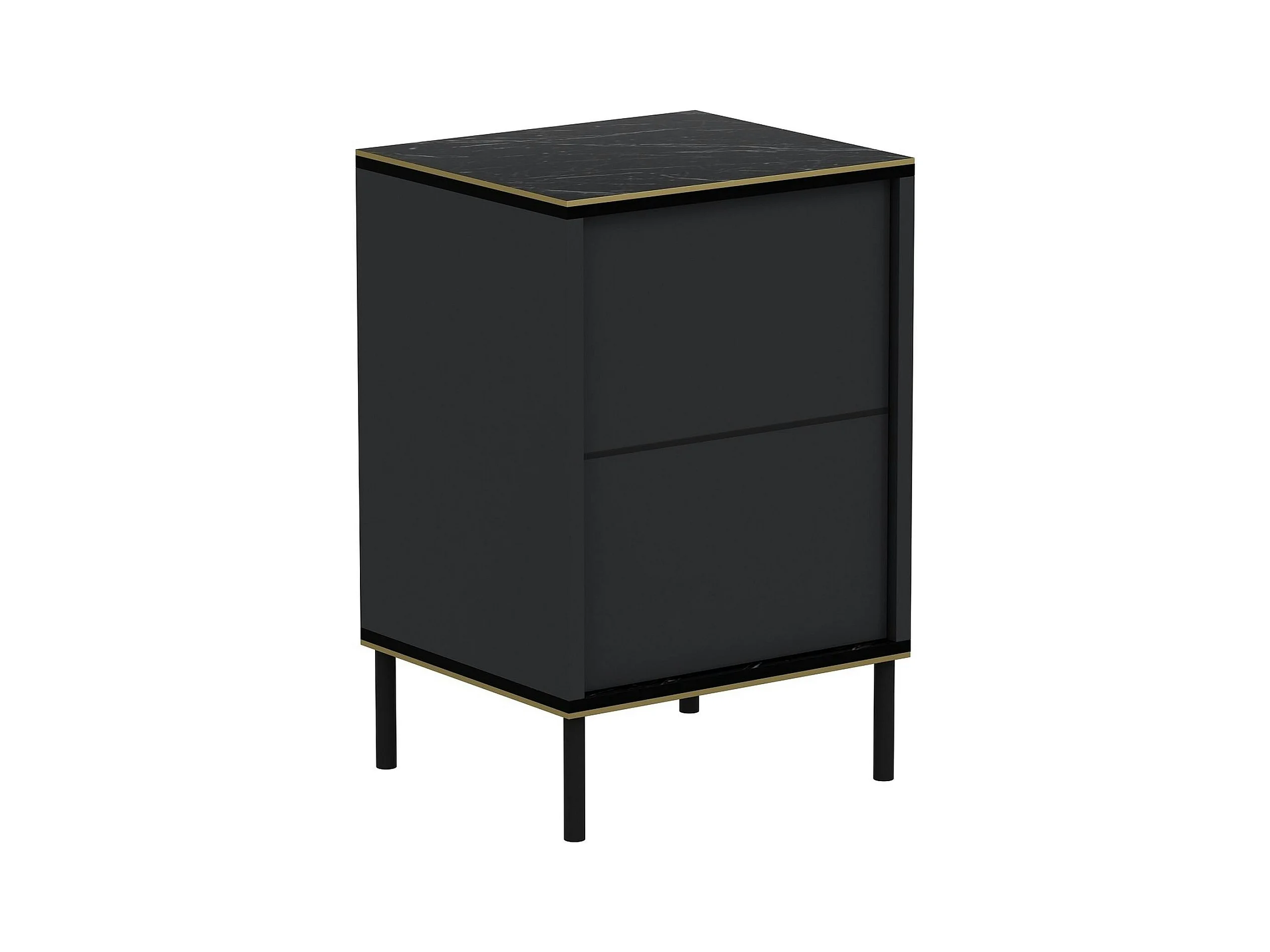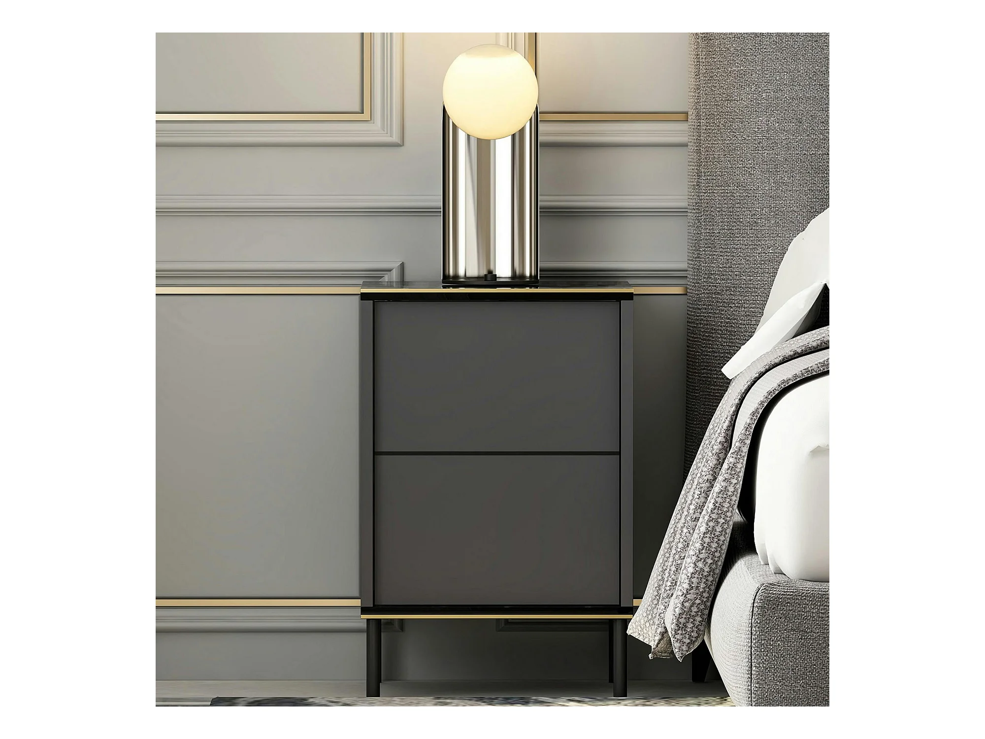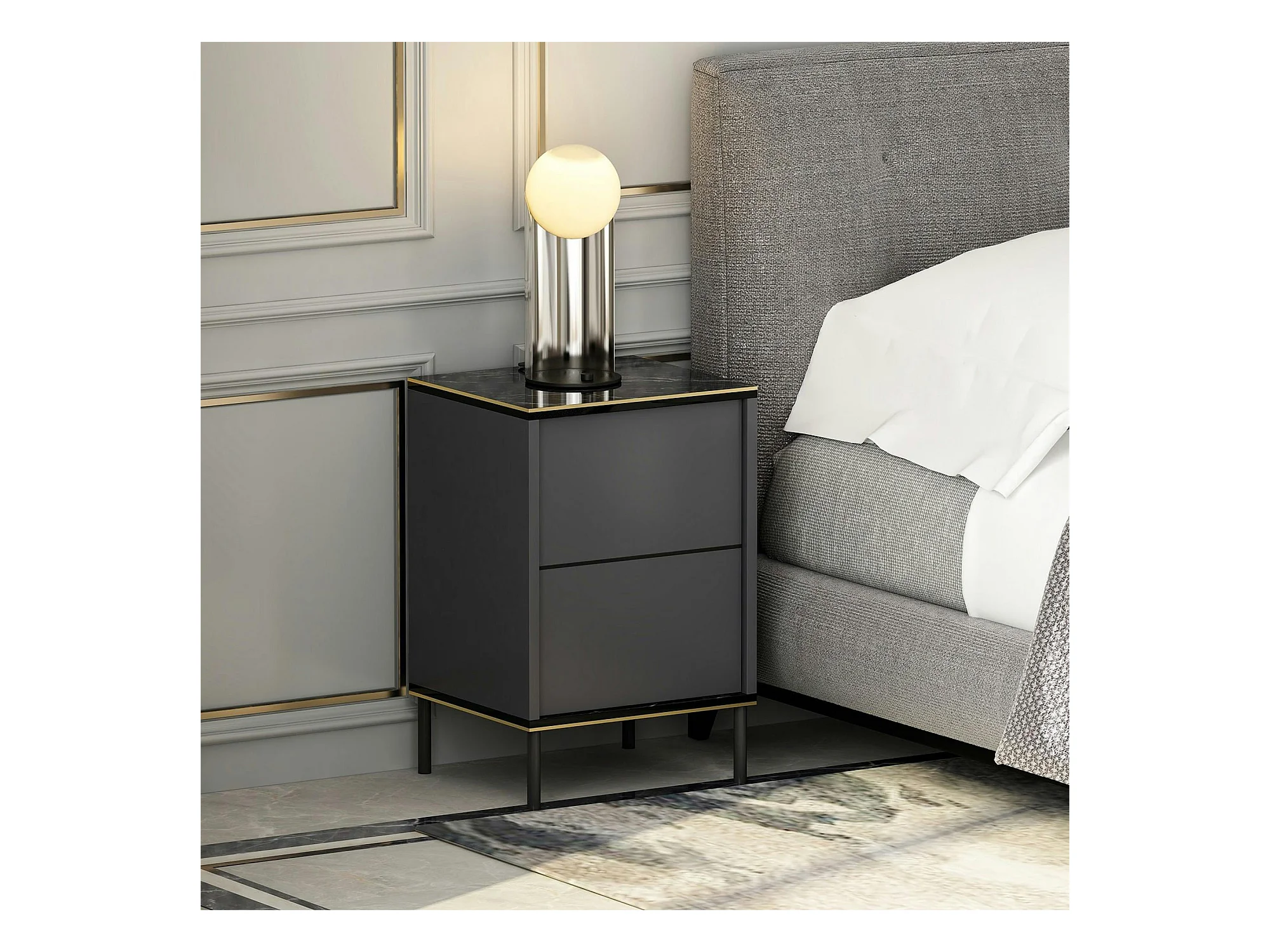 Table de nuit moderne chic gris foncé, plateau marbré BYRON