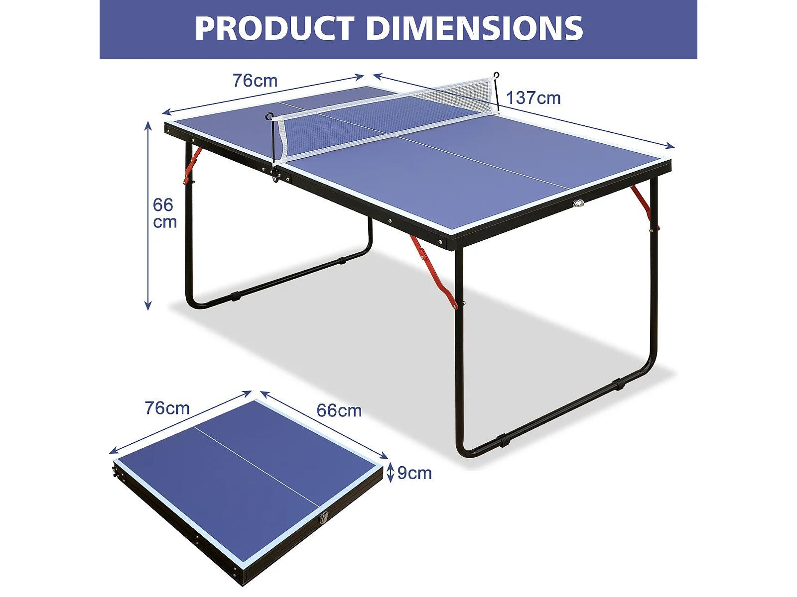Table de ping-pong pliable avec 2 raquettes et 3 balles - Bois MDF bleu 137,2 x 76,2 x 66 cm