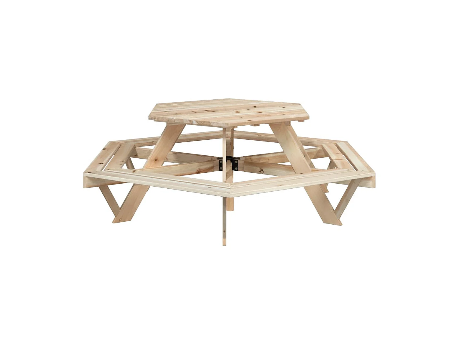 Table de pique-nique pour 6 enfants avec parasol hexagone sapin