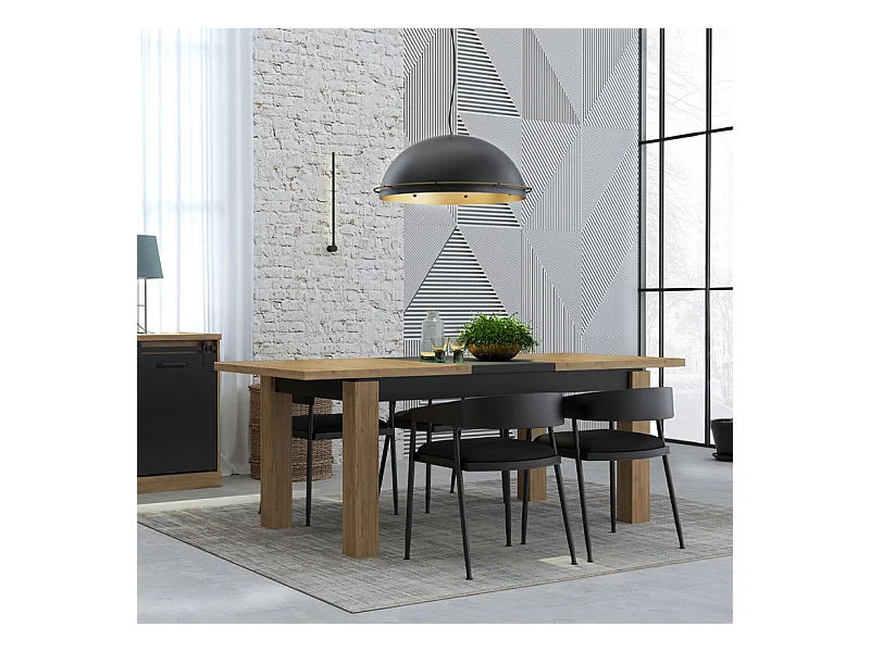 Table de repas extensible 160 à 206 cm décor chêne et noir mat - FARM
