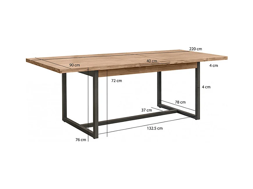 Table de repas extensible 180/220 cm bois d'acacia et métal - MAYBEL