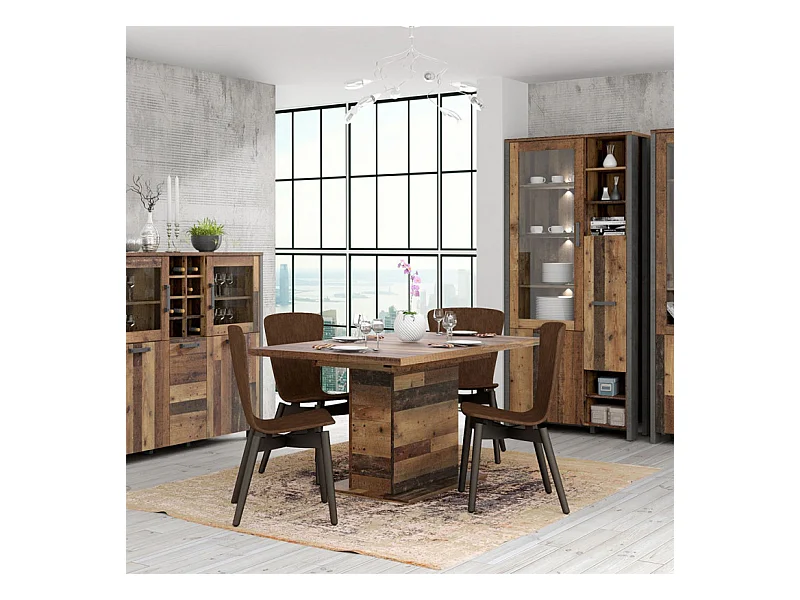 Table de repas extensible 160 à 200 cm décor bois vieilli - BUCK