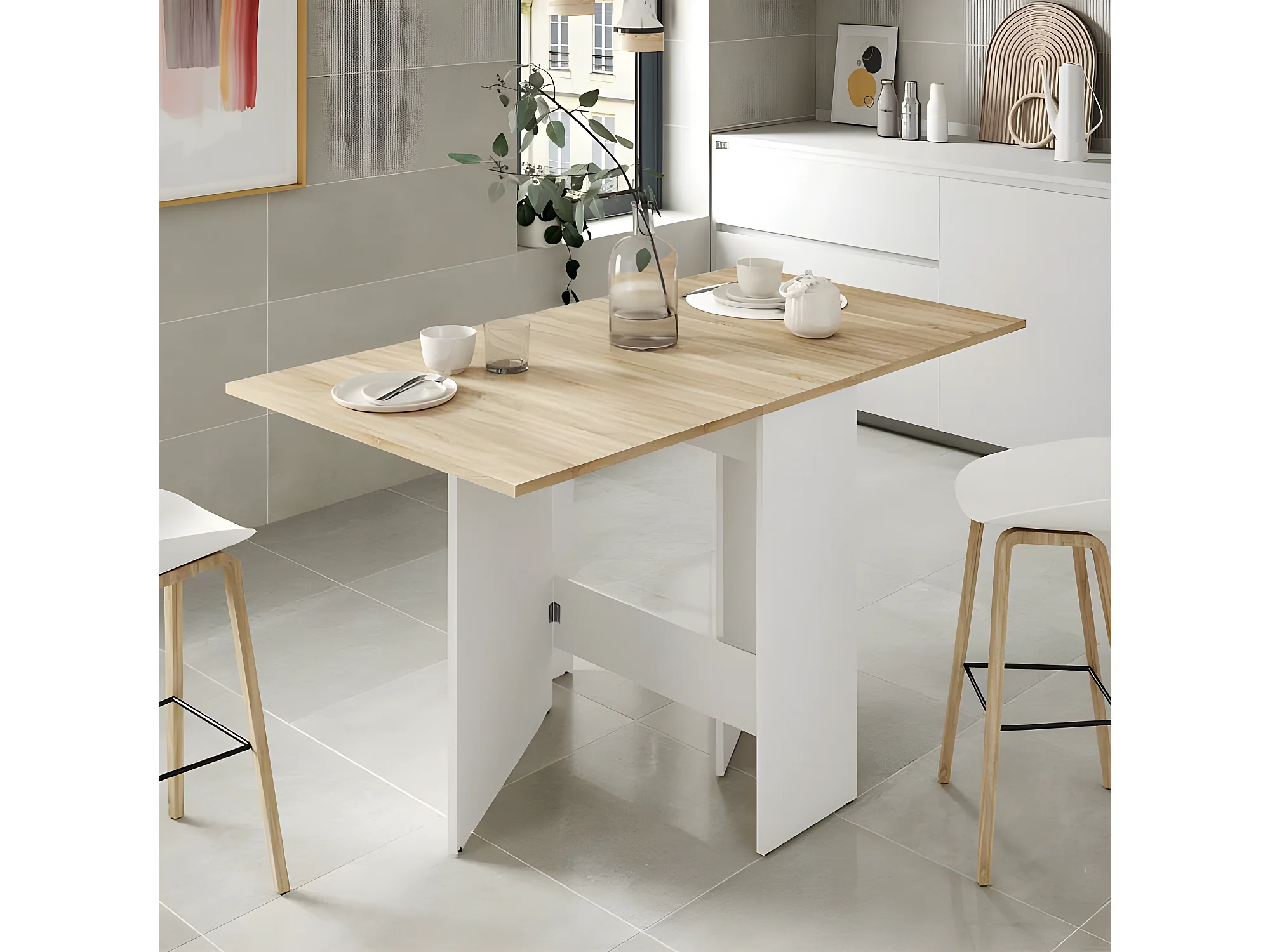 Table de repas pliante Blanc/Chêne clair - CARTIA - L 140 x l 77 x H 78 cm