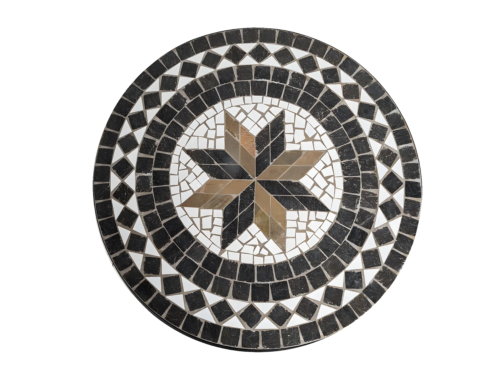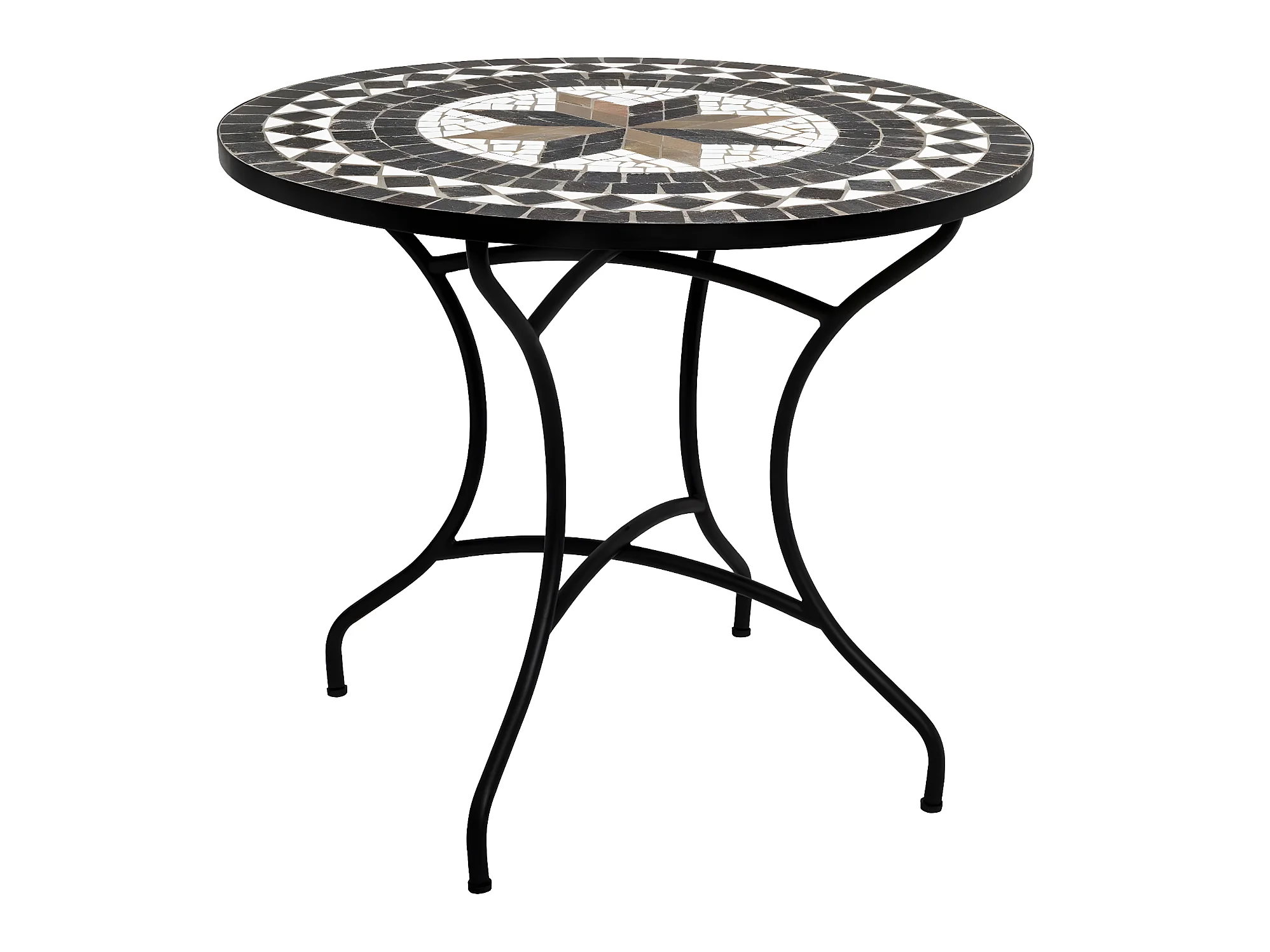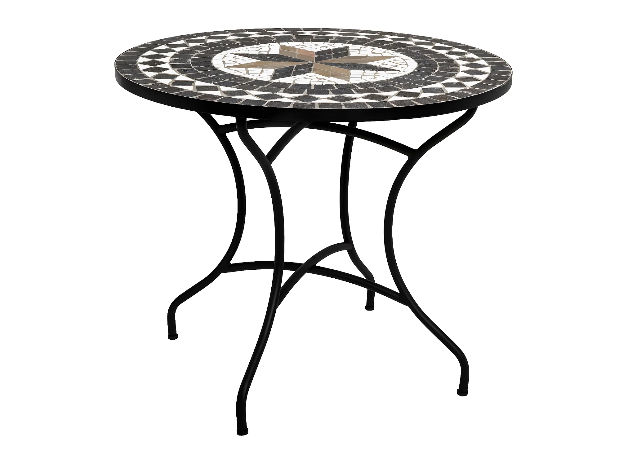 Table de repas ronde en mosaique coloris noir - D. 90 x H. 75 cm
