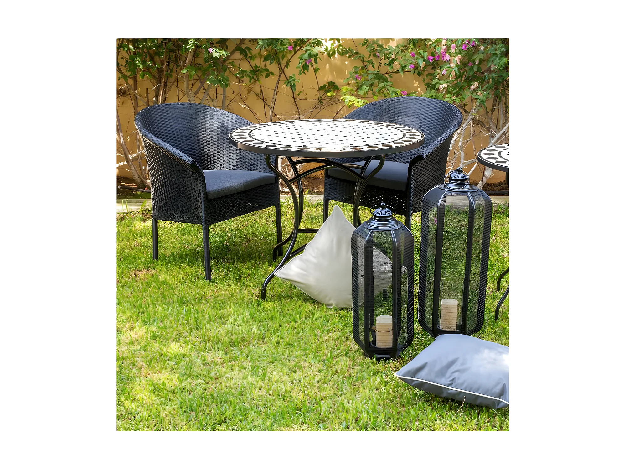 Table de repas ronde Fer/Céramique noir et blanc - MIRIHI