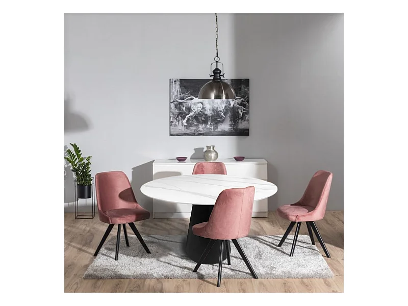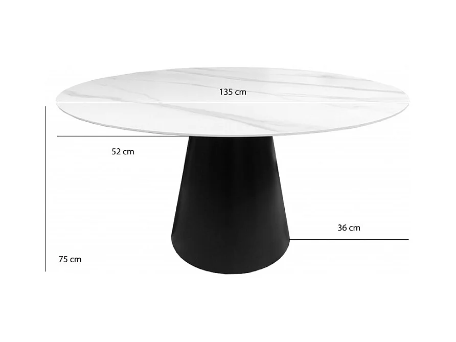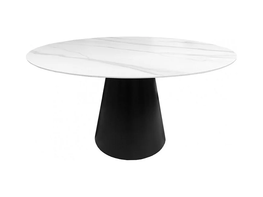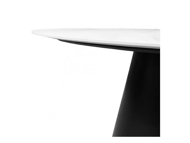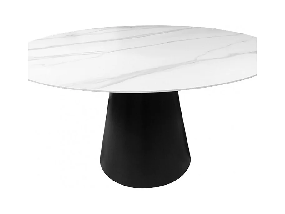 Table de repas ronde 135 cm plateau céramique blanc pied noir - ASHE
