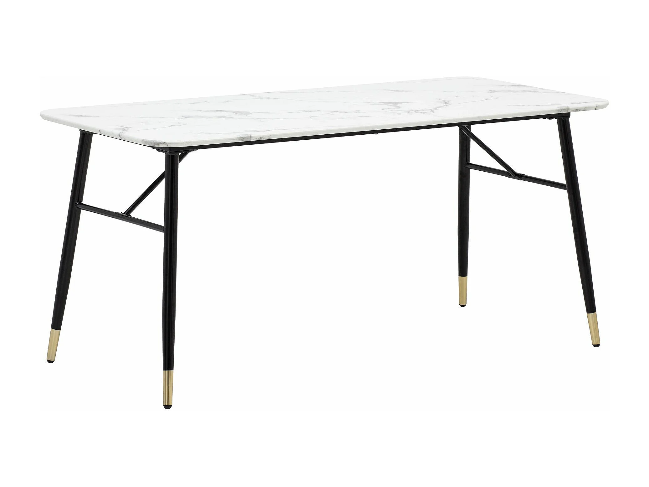 Table de Salle à Manger 160 x 80 x 76 cm Blanc Effet Marbre Grande Cuisine Rectangulaire