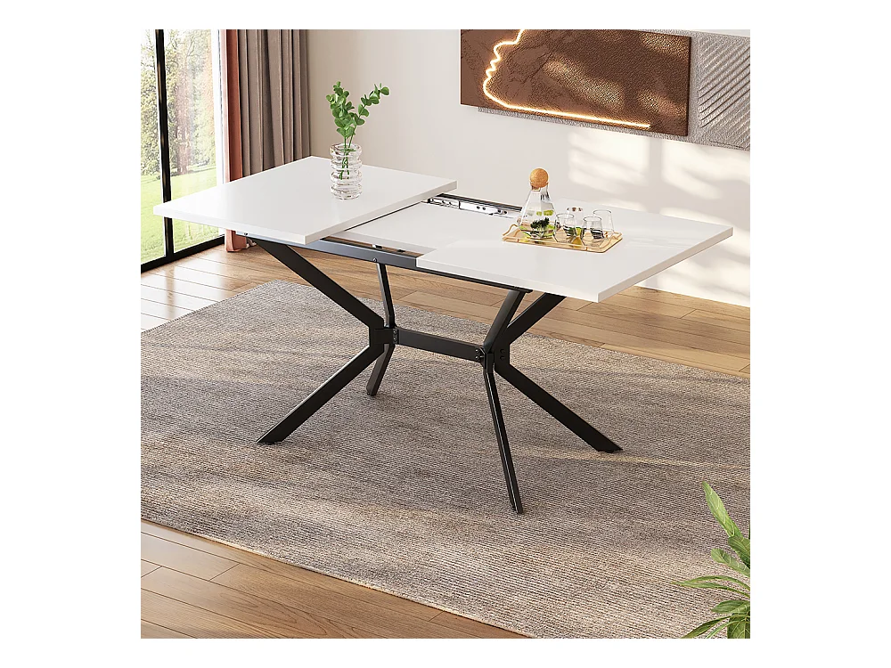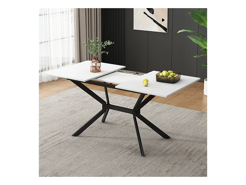 Table à manger extensible - 120 /160 x 80 x 66.1 cm - pieds en forme d'étoile - MDF + Métal - blanc